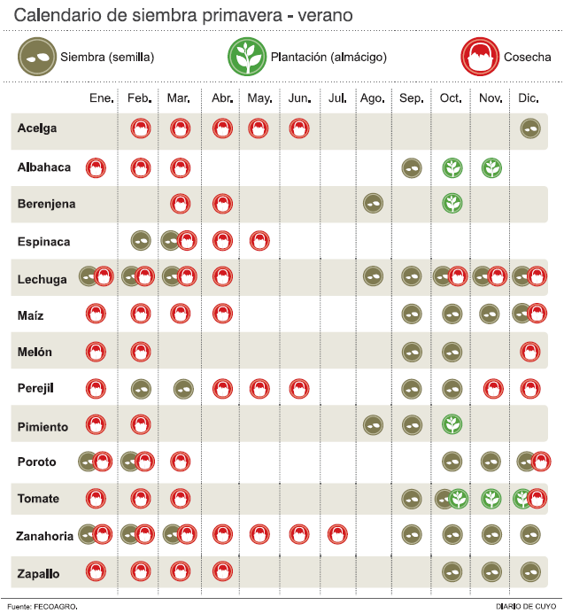 Cada hortaliza tiene su época de desarrollo, para saber qué podemos sembrar en cada estación debemos consultar el "Calendario de siembra".