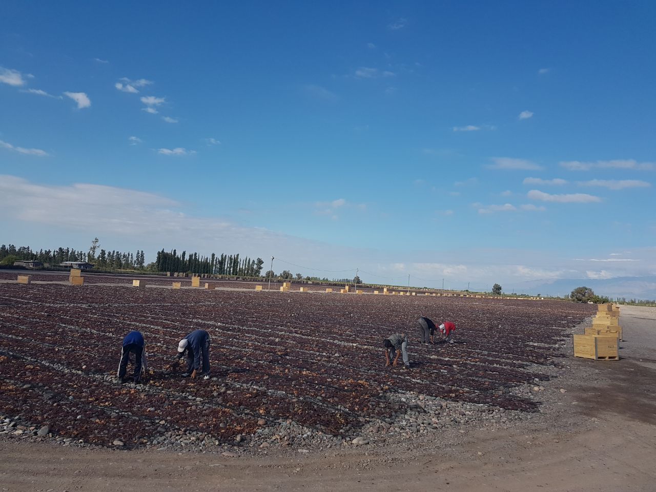 "Cuenta con 1.400 metros cuadrados cubiertos y con una línea de procesamiento de pasas -de unos 50 metros de largo- desarrollada en Argentina por Industrias Albión, con una capacidad de trabajo de 5.000 kilogramos de pasa por hora", señaló Guillermo Meló durante la gira.