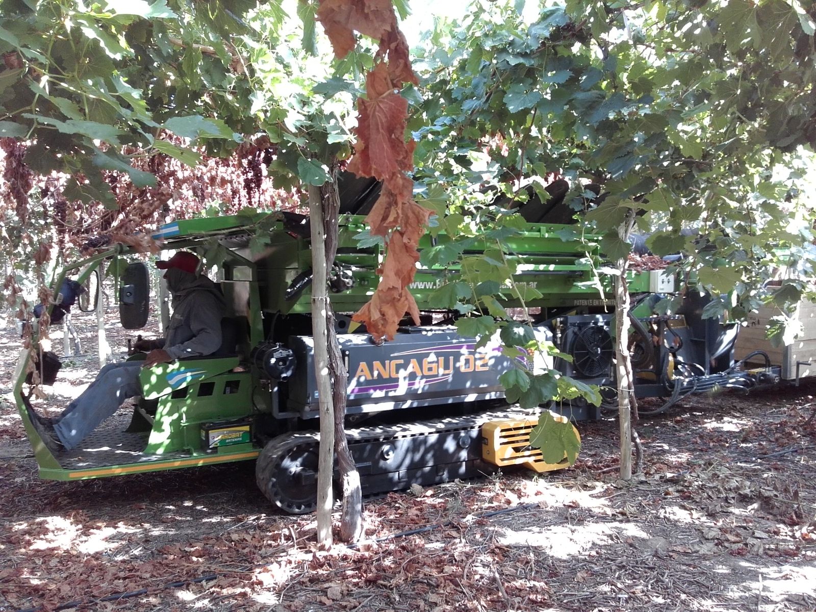 Es la tercer cosecha en la que experimentan con la misma, estudiando el punto óptimo de cosecha. Tiene un motor a explosión diesel de tres cilindros, un tren de tres bombas hidráulicas que mueven la cinta transportadora, golpeo de cosecha y la turbina expulsora de palos y hojas con un sistema de descarga automática de bines.