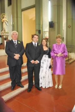Rocío Domínguez (5) fue la encargada de llevar los anillos al altar. Fueron padrinos sus padres, Cristina Genovese y esposo, Carlos Coria, Cristina Espín y esposo, Carlos Meyer. Testigos, Fernanda Weidmann y Javier García. Para el civil, Cristina y Laura Coria, Marisa Bilbao, Carlos Meyer, Juan Pablo Adarvez y Marcelo Tría.