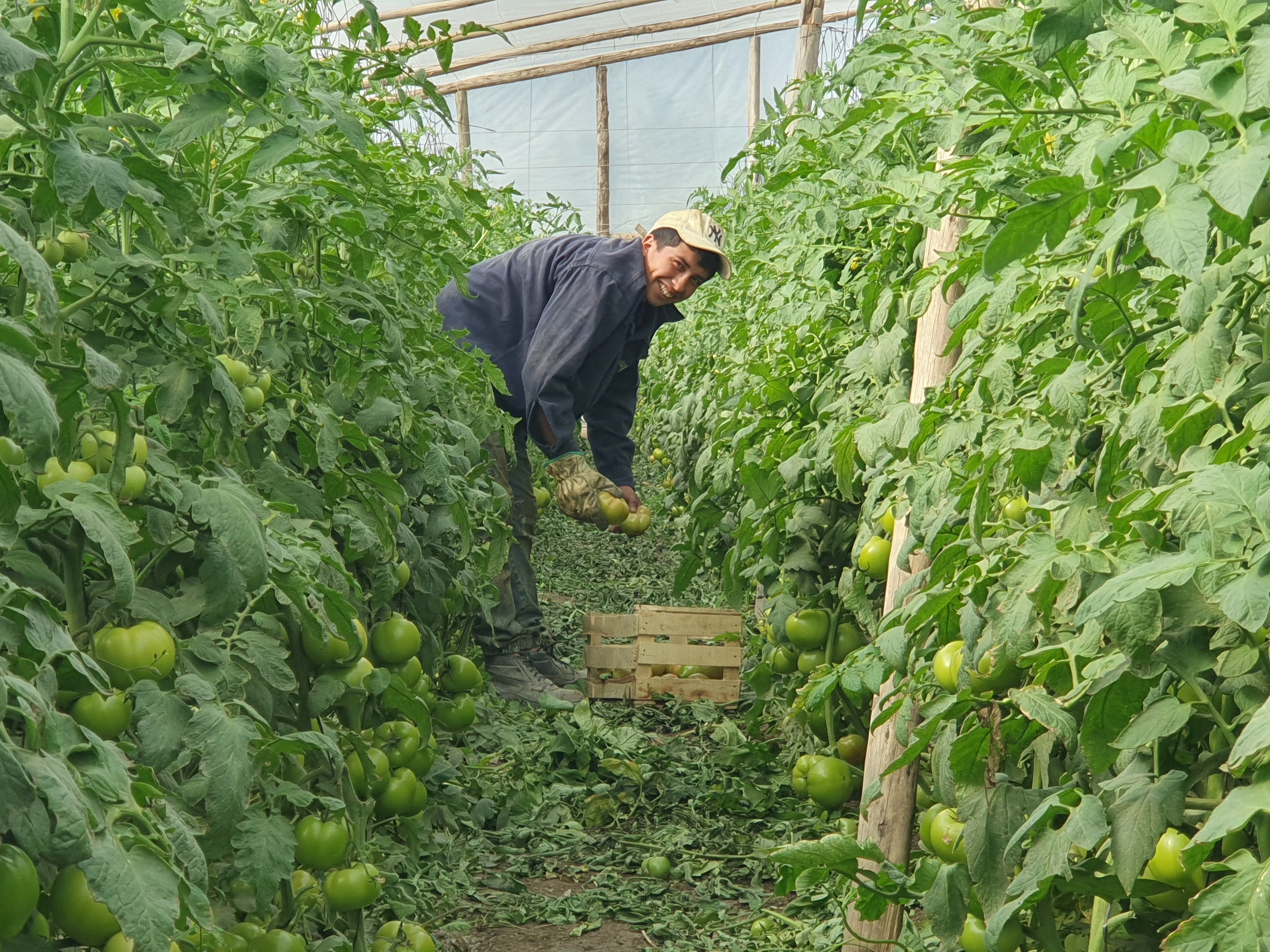 Mientras tanto, afuera en 1,2 hectáreas a cielo abierto, se aplicaba herbicida para tomate industria, donde el año pasado lograron 130 toneladas por hectárea. "Hay que cultivar todo el terreno, para poder crecer", terminó diciendo.