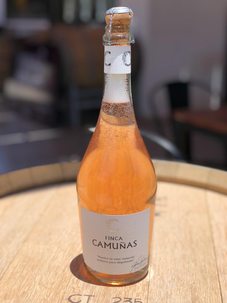 Camuñas tiene una base de un 80 por ciento Pinot Noir y 20 por ciento Chardonnay, sin agregado de azúcar (Nature), lo elabora por gusto personal y a muy baja escala.