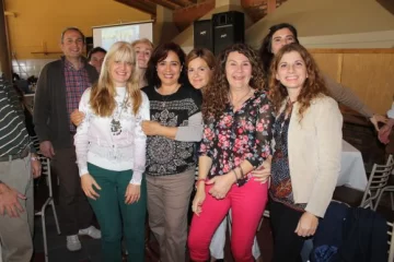 Su esposo le pidió un domingo que la acompañara a visitar un cliente, y así llegaron hasta El Almendro, cerca del mediodía sorprendiéndola los amigos y familia que estaban esperándola para celebrar su medio siglo cumpleañero. Ella es Mónica Beatriz Jordán y su esposo, hábil para dar sorpresas, Rubén David Pereyra (49). Ella es profesora de Nivel Primario en Nuestra Señora de Tulum y él, electrotécnico a punto de recibir su titulo de licenciado en Higiene y Seguridad y también, docente. Tienen tres hijos, María Cecilia (26), Fernando Daniel (22) y Martín Andrés (19). El almuerzo reunió a casi un centenar de amigos atendidos por el catering de Mauricio Reche. Las amigas de la cumpleañera le prepararon un show festivo en su transcurso. Mónica gusta de ir al gimnasio y está muy dedicada a su tarea de enseñanza. Comparte con su esposo clases de baile latino dos veces a la semana y están próximos a presentarse en público. Los hijos, encantados.