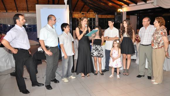 Mateo Celso Rosas, "Tito" para amigos y familia; cumplió la séptima década de vida y su esposa lo agasajó con una fiesta sorpresa organizada íntegramente por ella en el Salón Rocío, en Pocito; con el catering de Pedro Acosta para algo más de cien invitados. Tito es maestro de Enseñanza Técnica y actualmente jubilado de la Escuela Rogelio Boero. Está casado con Lidia Ester Gil (67), ama y señora de su casa y están próximos a cumplir cuarenta y ocho años de casados. Tienen tres hijos: Osvaldo Mateo (46), profesor de Tecnología y licenciado en Ciencias de la Educación, casado con Elena Pitavino y tres hijos, Julieta (15), Luciana (11) y Mateo (2). Le sigue Mariela del Carmen (41), profesora de Inglés y licenciada en Psicopedagogía; con un hijo, Martín Manuel Giugni (11). Por último, Raúl Manuel (39), Analista Químico y profesor en Electrónica; casado con Valeria García y dos hijos, Francisco Agustín (14) y María Victoria (5); residen en San Luis.