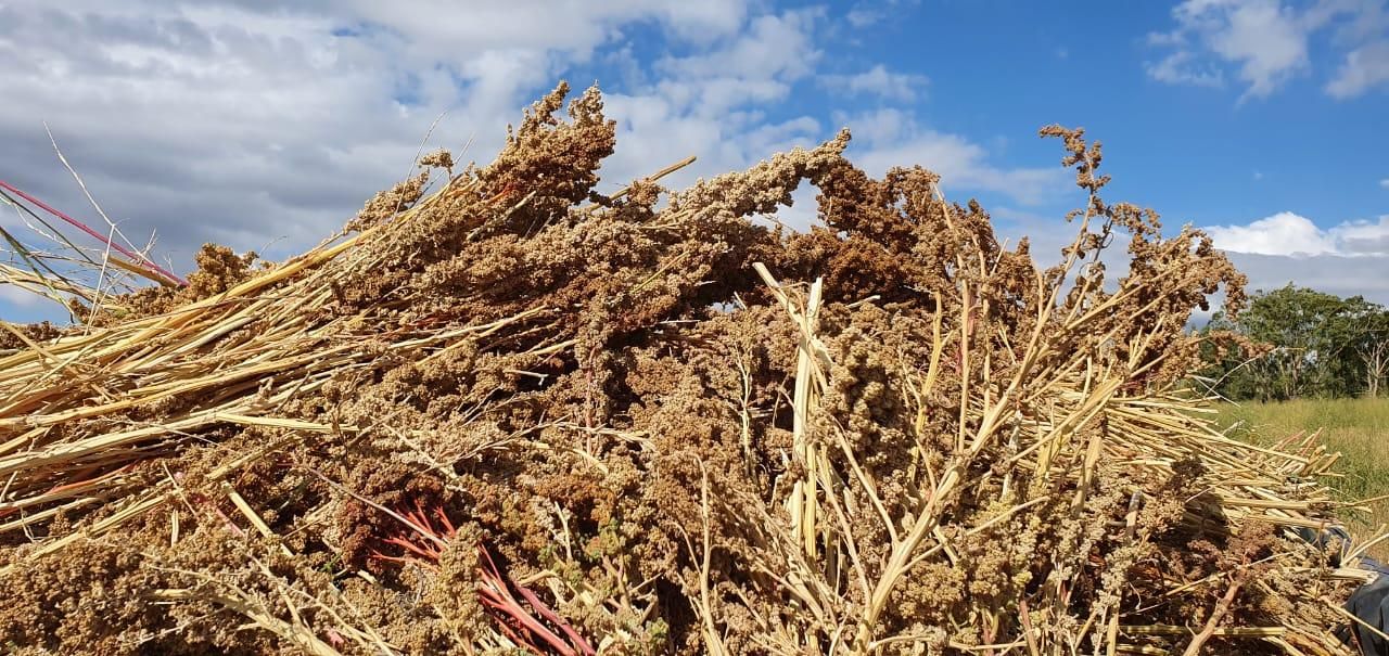 Dijeron a Suplemento Verde "se sembró entre el 10 y 20 de septiembre de 2021 y se hizo la cosecha el pasado 10 de marzo, fue trillada a la antigua (era trilla a caballo) y luego clasificada en una seleccionadora de semillas. Muy buena calidad dio en los resultados finales. En el ensayo de quinoa contamos con el apoyo de INTA y la responsabilidad de la ingeniera agrónoma Georgina Lemole".