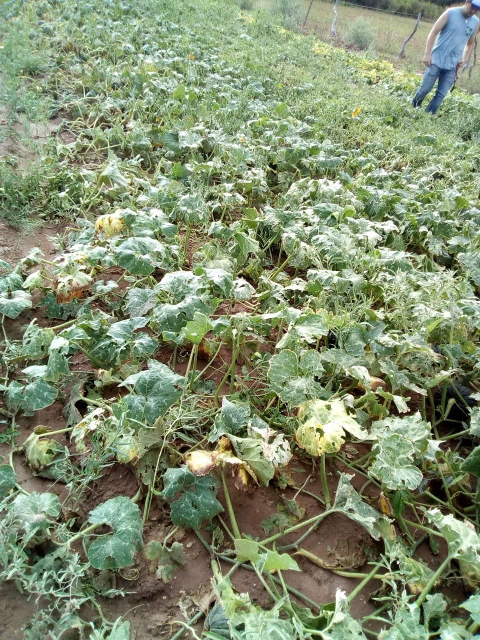 Entre otros cultivos, zapallos de los tipo anco e inglés, tomates redondos y peritas, pimientos verdes morrones, berenjenas violetas clásicas, varios de ellos a punto de ser comercializados a Buenos Aires, se perdieron por la caída severa de granizo el día 30 de enero, en algunas zonas del departamento Jáchal, como es el caso de Huaco.