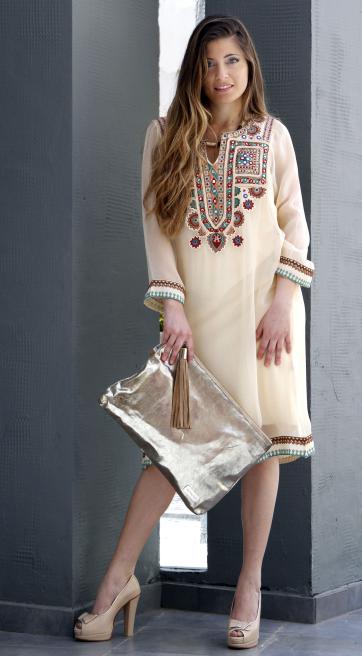 La riqueza de los géneros y los diseños ricos en texturas, colores y bordados, característicos de este país de Oriente Medio aparecen en el guardarropa femenino de todas las edades, ya sea en prendas completas o en chales y pañuelos.