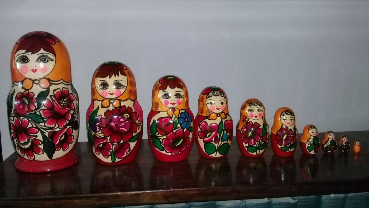 María del Valle, Alejandro Quinto y su hermano Fernando Bravo abren las puertas de su casa paterna, de Don Leopoldo Bravo, para mostrar los objetos que atesoran de Moscú, en los años que su padre fue embajador de la Argentina en ese país. Ellos vivieron allí desde 1976 a 1981. Cuentan que muchos de los recuerdos tienen un valor histórico y cultural y hoy son objetos de las artesanías rusas más populares, pero para ellos, son elementos que cuentan parte de su propia vida. La lista es muy variada y grande, casi un museo, pero ponen el acento en los productos que más se ven en las calles o zonas más turísticas, como la Calle Arbat de Moscú, en Sparrow Hills, centros comerciales como Gun y en los mercados especializados en la venta de souvenirs como el Mercado de Izmailovo.