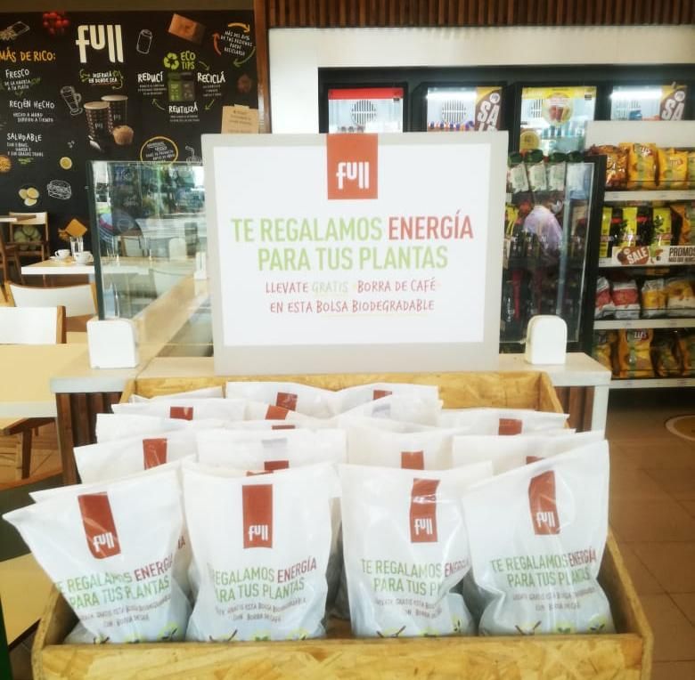 Ni lerdos ni perezosos los dueños de las estaciones de servicio Ruiz Hermanos y de la firma Ruiz SRL – ubicadas en Ruta 20 a la altura del kilómetro 7 conocida como La Legua, otra en España y República del Líbano en Rawson y una más de Benavídez y Maradona-, se sumaron a la propuesta y destinaron un rinconcito vistoso para colocar un exhibidor con las bolsitas (que también están a tono porque son biodegradables) que contienen entre 140 y 150 gramos de fertilizante generado en cada tacita de café.