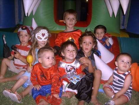 Cualquier motivo es bueno, por un lado Carnaval y por el otro, despedirse de las vacaciones y así, se juntaron los hijos de los dueños de casa, Verduci España, con amiguitos y primos: Alejo Daimiel, Martiniano y Valentín Verduci, Pedro Ruiz y esposa, Florencia González. Detrás están Francisco González y Torcuato Ruiz.