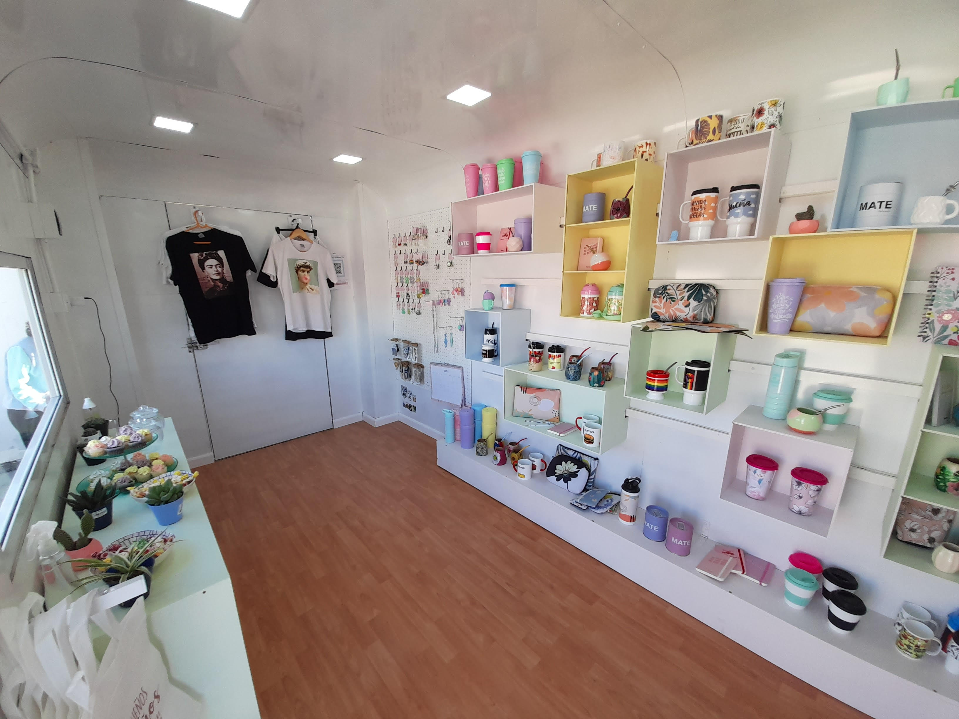 Es un amplio espacio sobre ruedas -de 4 metros por dos y medio-, hecho totalmente en San Juan, que es tirado por una camioneta para llegar hasta cualquier punto de la provincia y ofrecer propuestas modernas e innovadoras. Se puede decir que el inicio de esta historia fue hace tres años cuando Marian (como le dicen sus amigos y familiares) comenzó un microemprendimiento -Pequeños Sueños-, dedicado a la sublimación de diferentes productos con diseños propios, y de otros diseñadores que solicitaban el servicio. "En aquel momento comencé sublimando tazas, jarritos y otras cositas. Al poco tiempo incorporamos cartucheras XL que ahora son como nuestra marca registrada porque la gente las elige mucho y tienen múltiples usos, todas con diseños propios. Luego llegaron las notebooks, la bijouterie, y así seguimos sumando", cuenta Marianela.