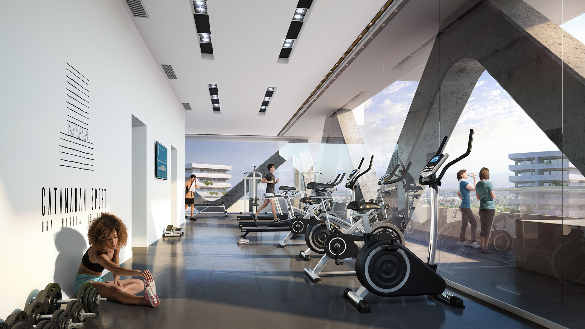 Este complejo cuenta con siete etapas de edificación. Cada torre cuenta con departamentos de 80m cuadrados, 113m cuadrados y 180m cuadrados. A su vez todas llevan el nombre Catamarán, pero se identifican por el número. Catamarán 9, es la torre que se entrega en el mes de diciembre, está lista y toda vendida, que es la que da a Av. Paula A. de Sarmiento. La torre siguiente es Catamarán 10, la cual todavía no se termina, pero está vendida.