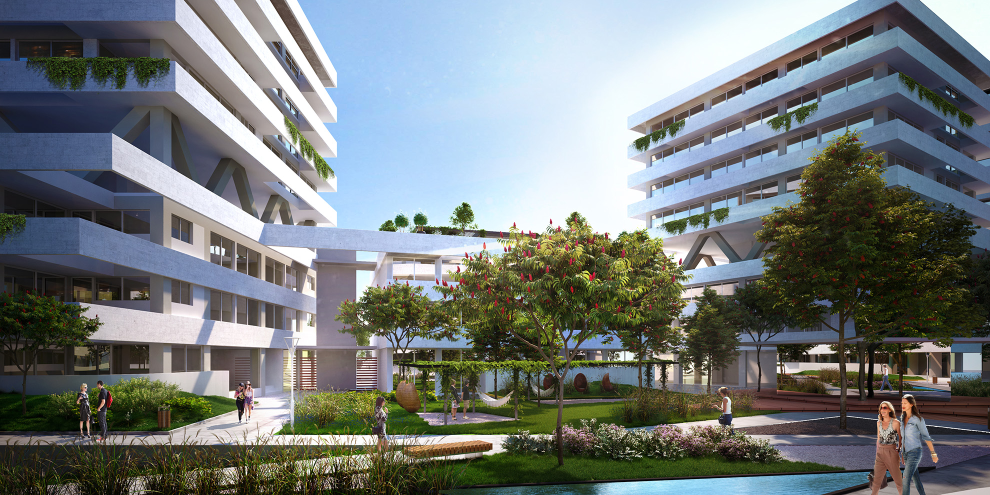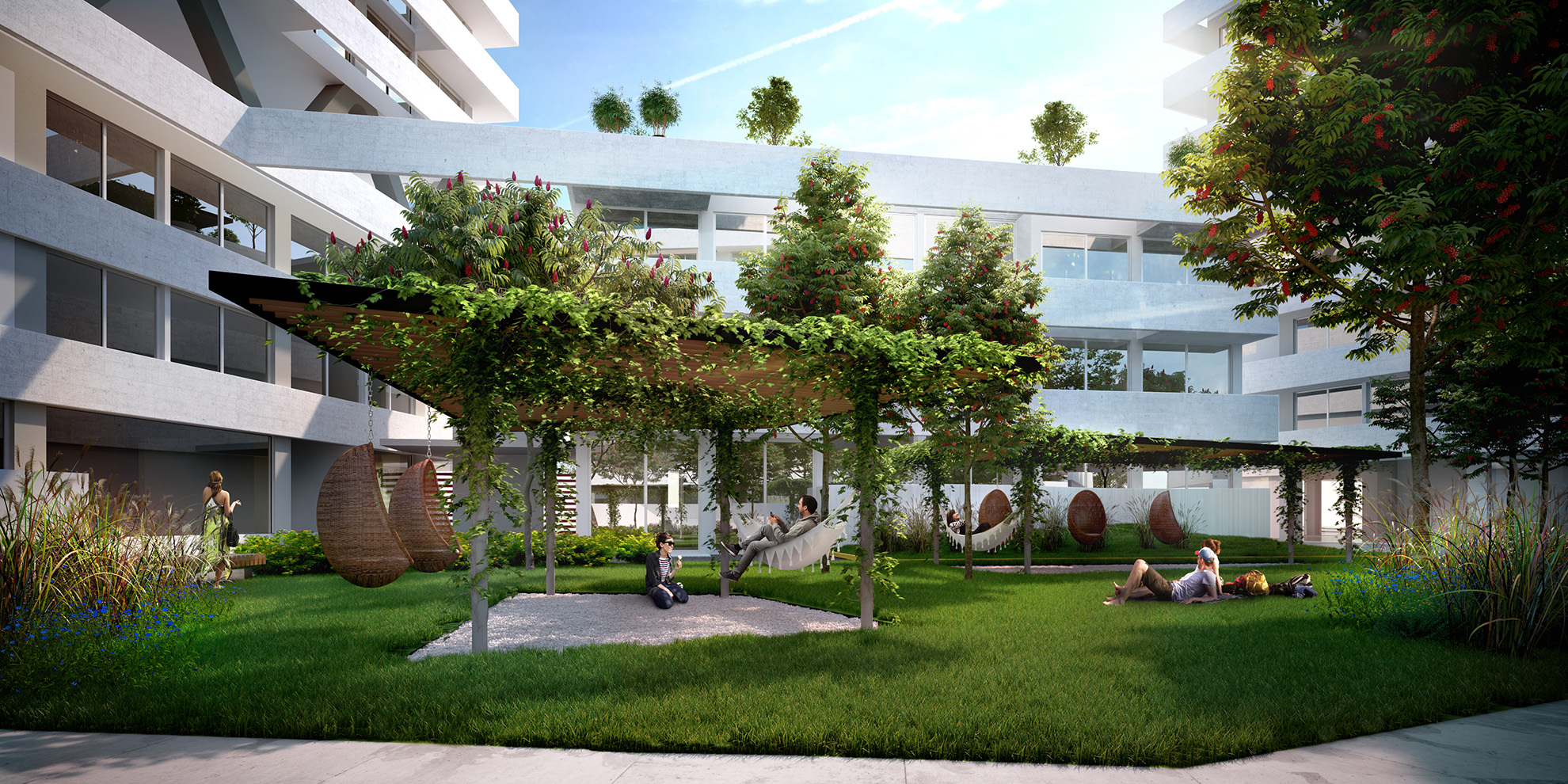 - Cuenta con 7.000m. cuadrados de espacios verdes para disfrutar del aire libre junto a la naturaleza. El mobiliario de exterior es de diseño junto a espejos de agua e iluminación led. Árboles de mediano y gran porte. Jardín Zen.