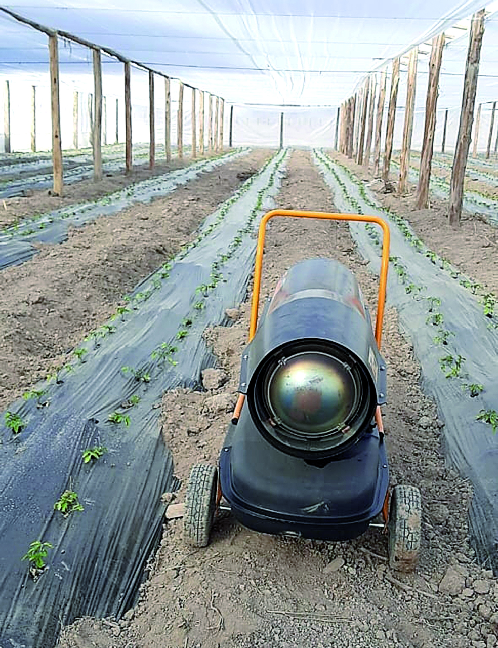55 mil calorías por hora tiran los caloventores usados por los chacareros en sus naves productivas.