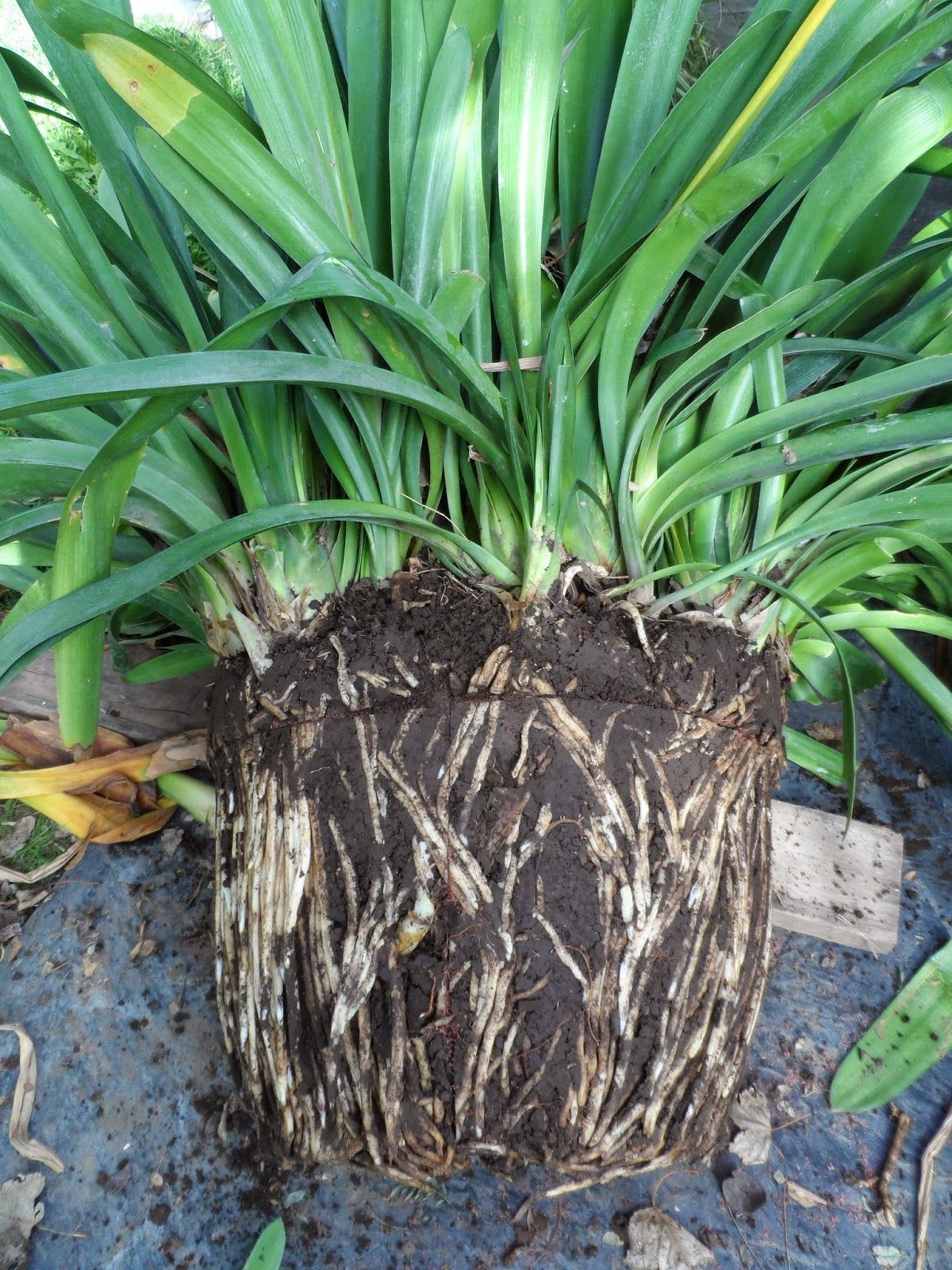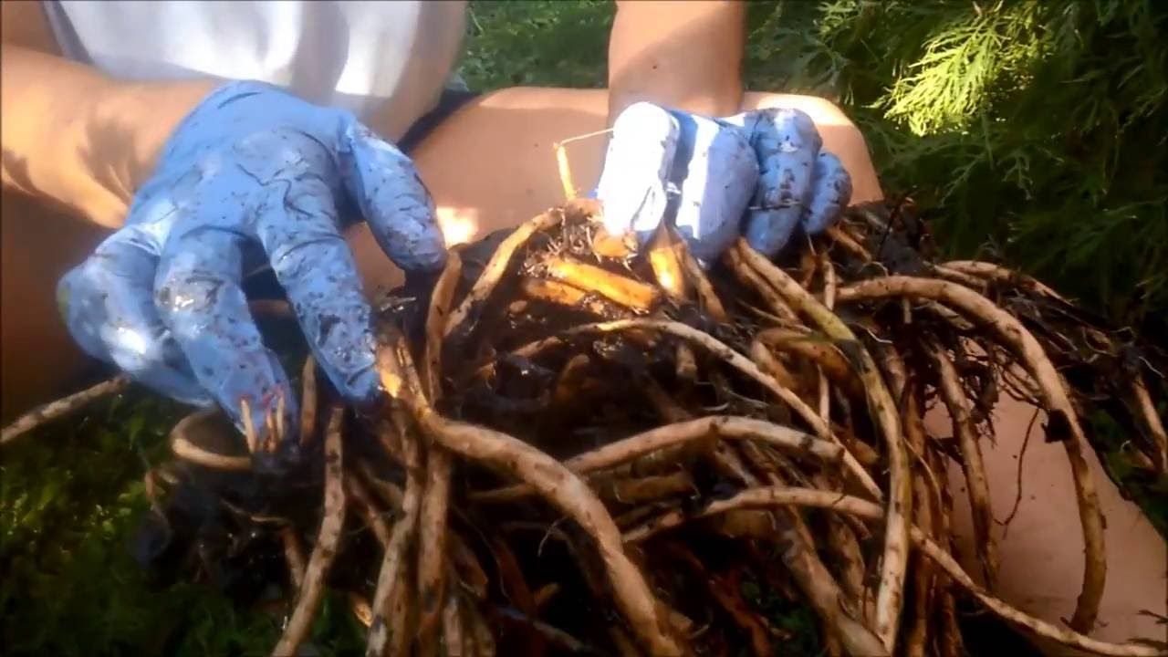 2. Desentiérrala con cuidado y divide la bola de raíces en dos o más secciones; separando cada grupo de hojas con su propio sistema de raíces.