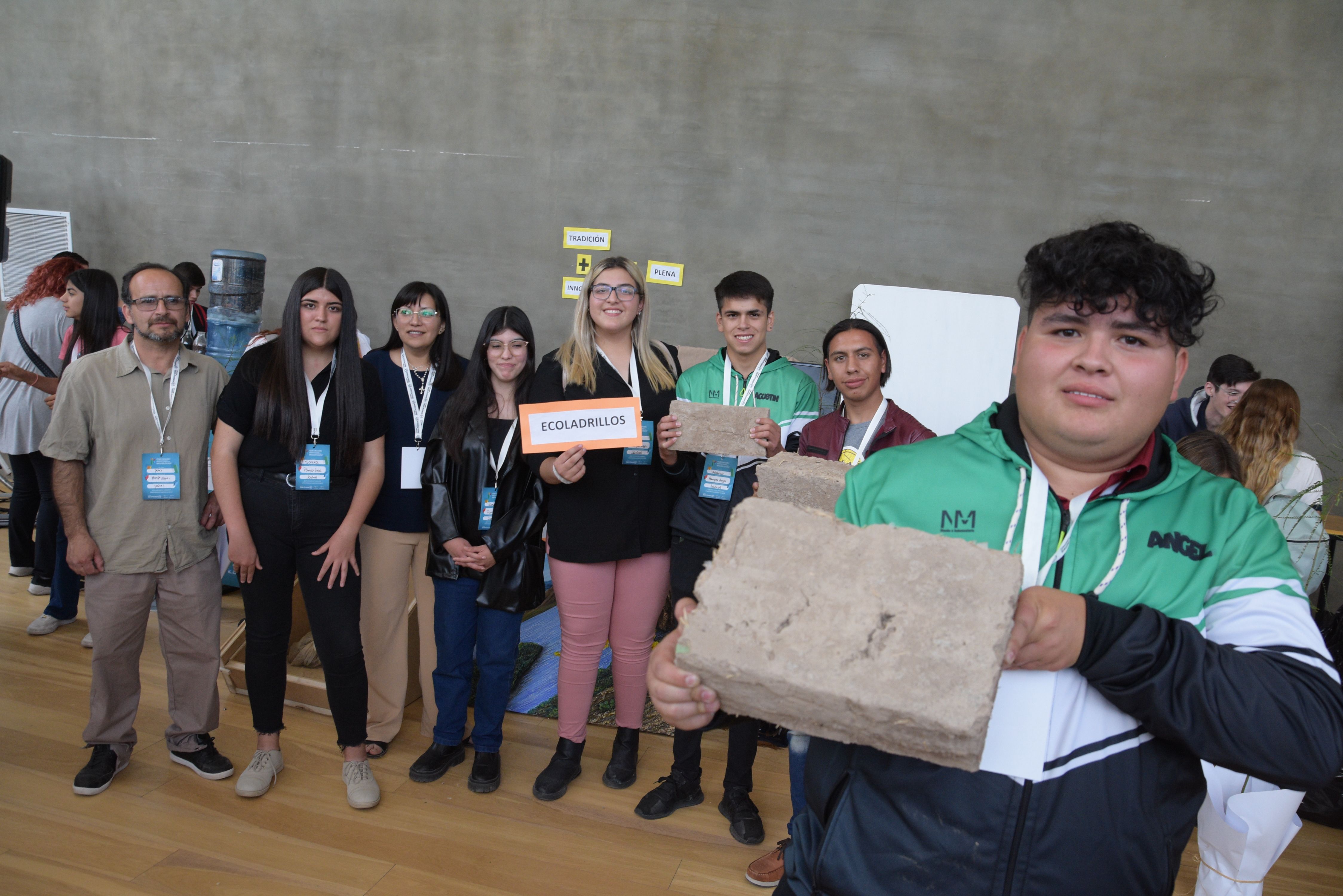 Nicole, Rosalía, Zaira, Axel, Franco y Nazareno, apenas seis de los alumnos de 5¦ y 6¦ año de la Escuela de Nivel Medio de Pampa Vieja, trasladaron con mucho cuidado las muestras de los eco-ladrillos que ellos mismos hicieron en dos versiones: de tamaño tradicional (más grande y más pesado) y otro compacto. Querían demostrar y demostrarse que con ayuda de alguna maquinaria -como una adobera y una compactadora que consiguieron los profesores como María Vera (de Economía Social), Joel Quiroga (profe de Matemática) y Jorge Neira (de Tecnología)- mucha investigación y con los recursos que tenían a mano se puede hacer algo útil.