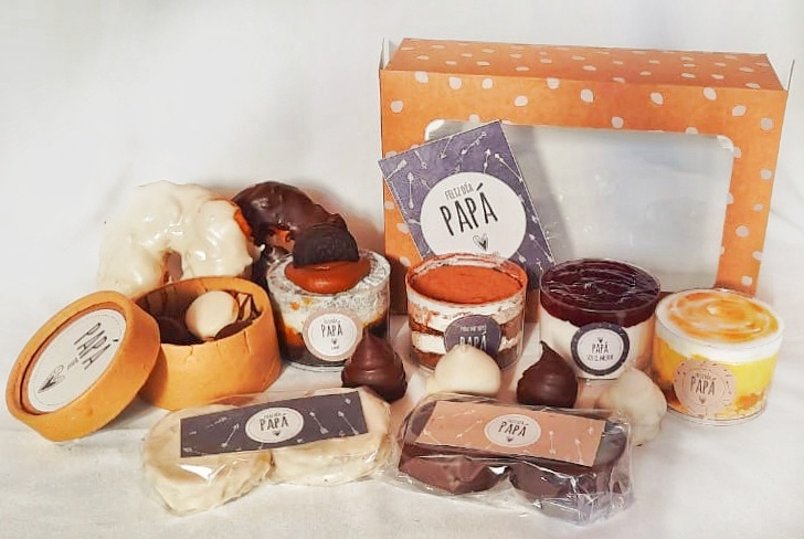 Para evitar caer en el tradicional desayuno, se inclinaron por una opción más original y propia para cualquier momento del día. El box para el Día del Padre incluye bombones de crema de avellana, conitos de dulce de leche, donnas, alfajores marplatenses, alfajores de nuez y chocolate blanco, además de 4 postres en vasito. Los mismos son lemon pie, panna cotta con frutos rojos, tiramisú y postre óreo.