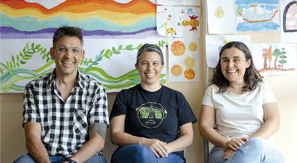 "El objetivo esta vez era introducir el arte en el hospital, para que las paredes recobren todo sentido y no el que les da un sticker de princesa o de Cars. La propuesta es hacer algo que nos represente, que exprese nuestro deseo para con los pacientes o personas que pudieran estar ahí casi como si fuese un refugio, que los haga sentir menos atemorizados frente a la enfermedad, más tranquilos. De eso se trata, de generar un proceso de humanización de estas paredes para que dejen de estar vacías y puedan tener imágenes que sean amigables, que ayuden a trasladarse de un momento de enfermedad y tratamiento, de angustia a contactar con la vida, la esperanza y permitan darle otro sentido a la espera, al dolor. El arte y la creatividad ayudan a procesar momentos, sentimientos. Por eso estamos convencidas de que los beneficios del arte en espacios como un hospital son muchísimos, tanto para quien lo va a usar a ese espacio como para quien hace la obra. En este caso que pasaron de ser los beneficiarios de la acción o las personas sobre las que generalmente gira toda la atención, a cumplir el rol de aristas, de transformadores del espacio. Ellos son los que aportaron y tuvieron la capacidad de hacer el cambio", explican las profesoras de arte Nadia Bula y Natalia Maggio (que a su vez es psicóloga en el Hospital Rawson). Ellas están acompañadas por el celador Atilio Aballay.