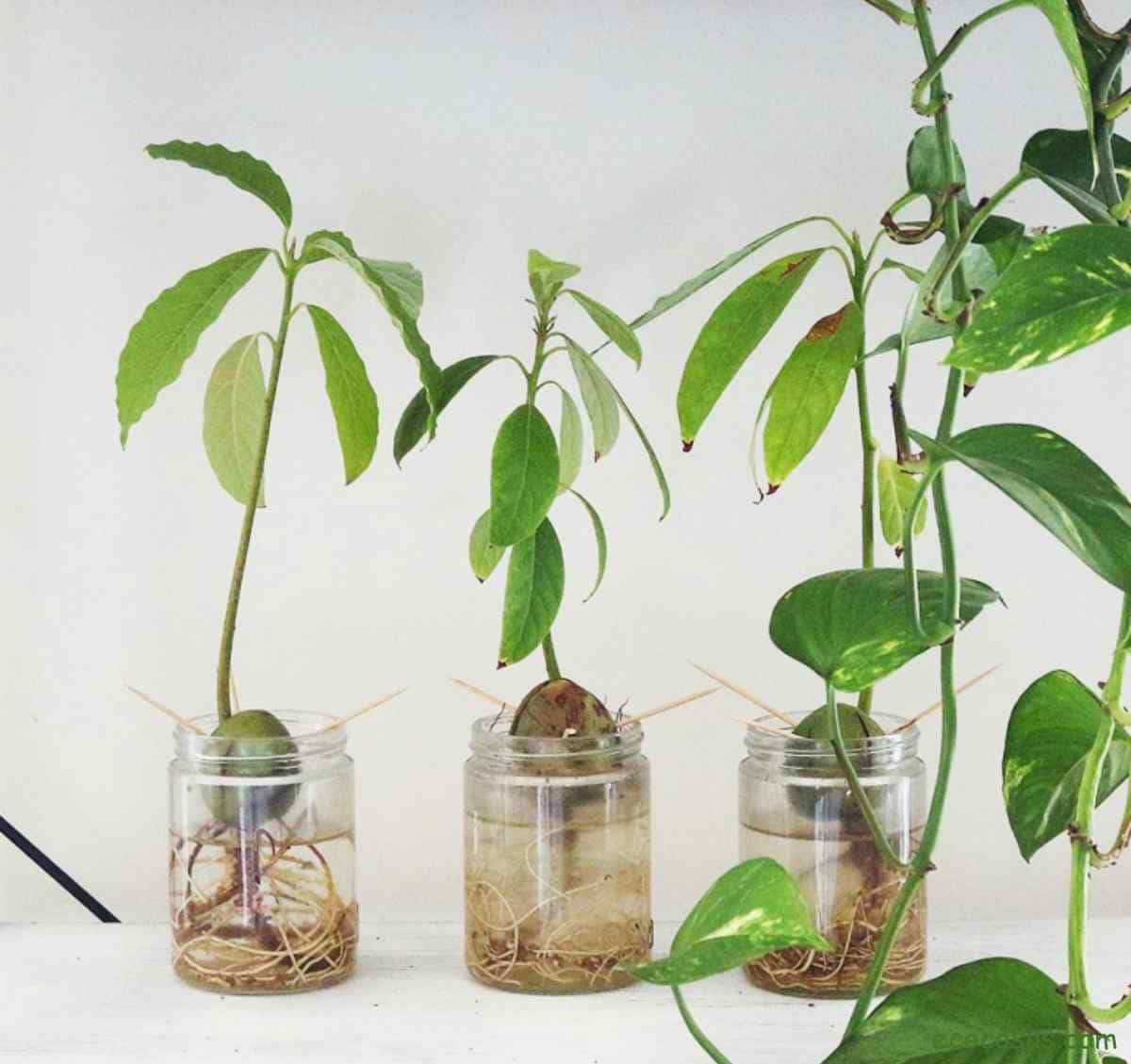 Germinar el hueso de la palta no es tan complicado, y al cabo de unos meses comenzará a salir no solo la raíz, sino también la planta. Mantenerla viva en el agua no es tan complicado, solo hay que asegurarse que la mitad del hueso este siempre en el agua.
