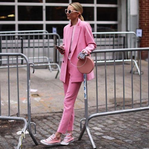 Llevar traje no significa que tengas que ponértelo con zapatos masculinos o taconazos porque con zapatillas también quedan de maravilla. Si tu traje es muy formal, mézclalo con unas zapatillas blancas; pero si tiene un toque de moda, atrévete con sneakers con estampados y, si además, eliges unas ugly sneakers con plataforma, ¡ganarás unos centímetros!