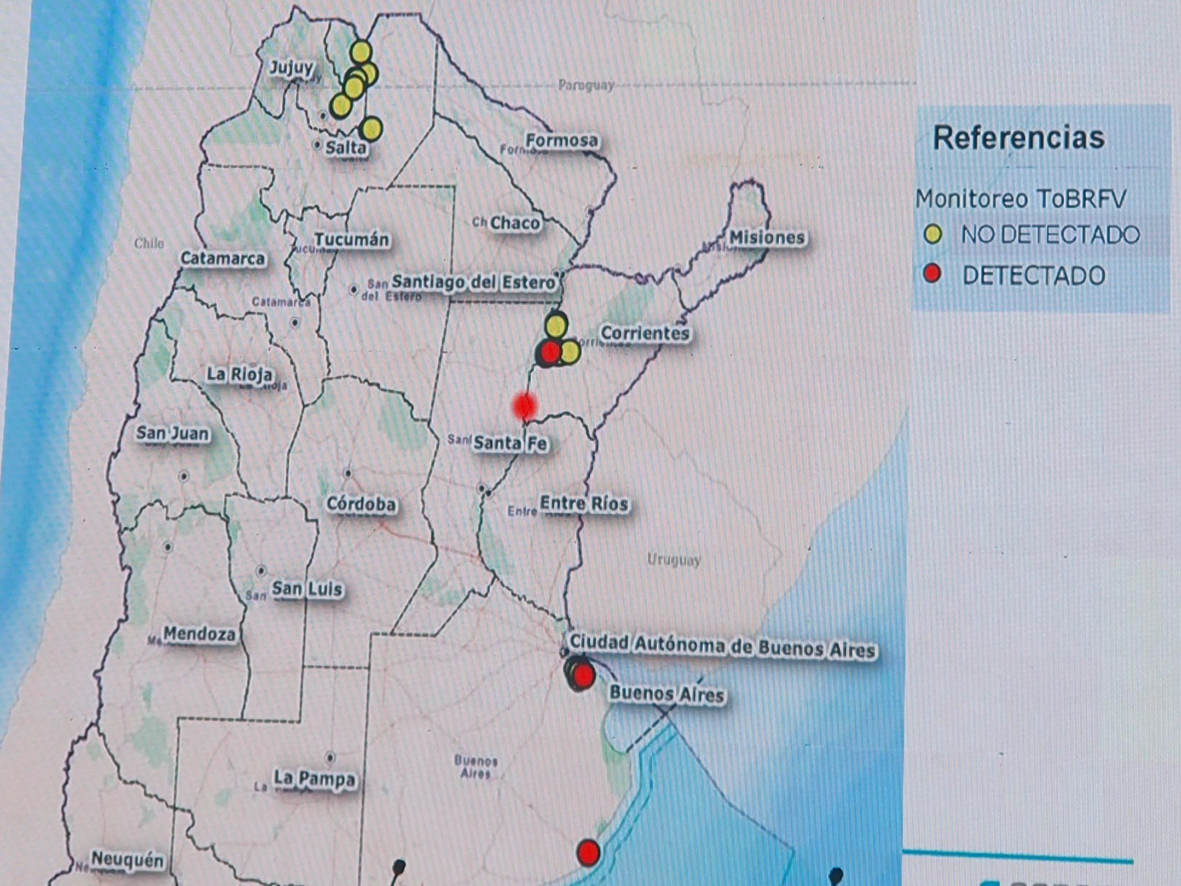 Es que en febrero de 2023, apareció este virus (denominado Tobamovirus) en invernaderos de Bella Vista, Corrientes y luego ha aparecido en otros puntos del país como en La Plata, cinturón hortícola de Buenos Aires. Los daños económicos a campo en el mundo están en valores de entre 30 y 70%.
