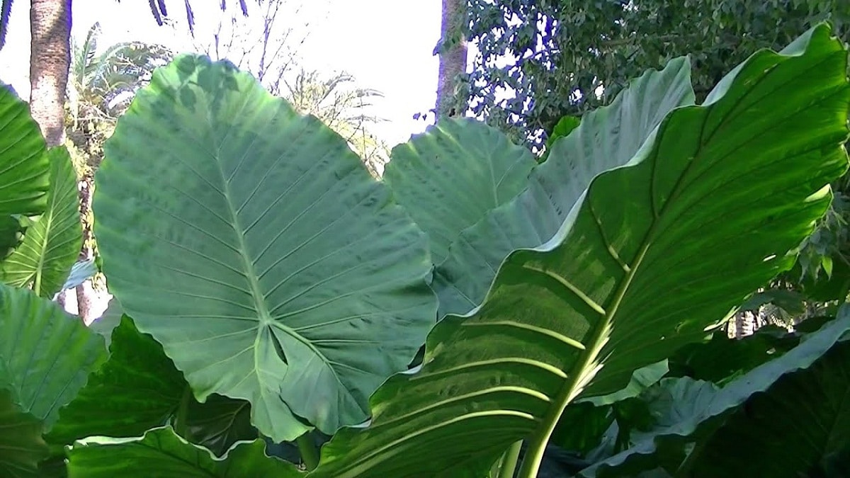 Esta planta con grandes hojas permanentes que parecen pantallas es especial para un diseño con aire bien tropical. Puede alcanzar 1,5 m de altura y otro tanto de diámetro cultivada en el suelo. Con el tiempo forma tallos aéreos notorios, marcados por cicatrices que dejaron las hojas al desprenderse. Crece hasta en la sombra, pero lo mejor es que se ubique bajo media sombra o sombra luminosa; bajo sol del mediodía sus hojas se queman. Es de clima tropical, pero puede crecer en climas templados, tolera heladas cortas de hasta -7¦ C y puede rebrotar luego sin problemas. Le gusta la humedad tanto del suelo como del aire, e incluso puede vivir sumergida unos centímetros en el agua. Se cultiva en patios, en jardines de lugares con inviernos benignos, en maceteros (donde alcanza mucho menor tamaño) e incluso en interiores muy luminosos.