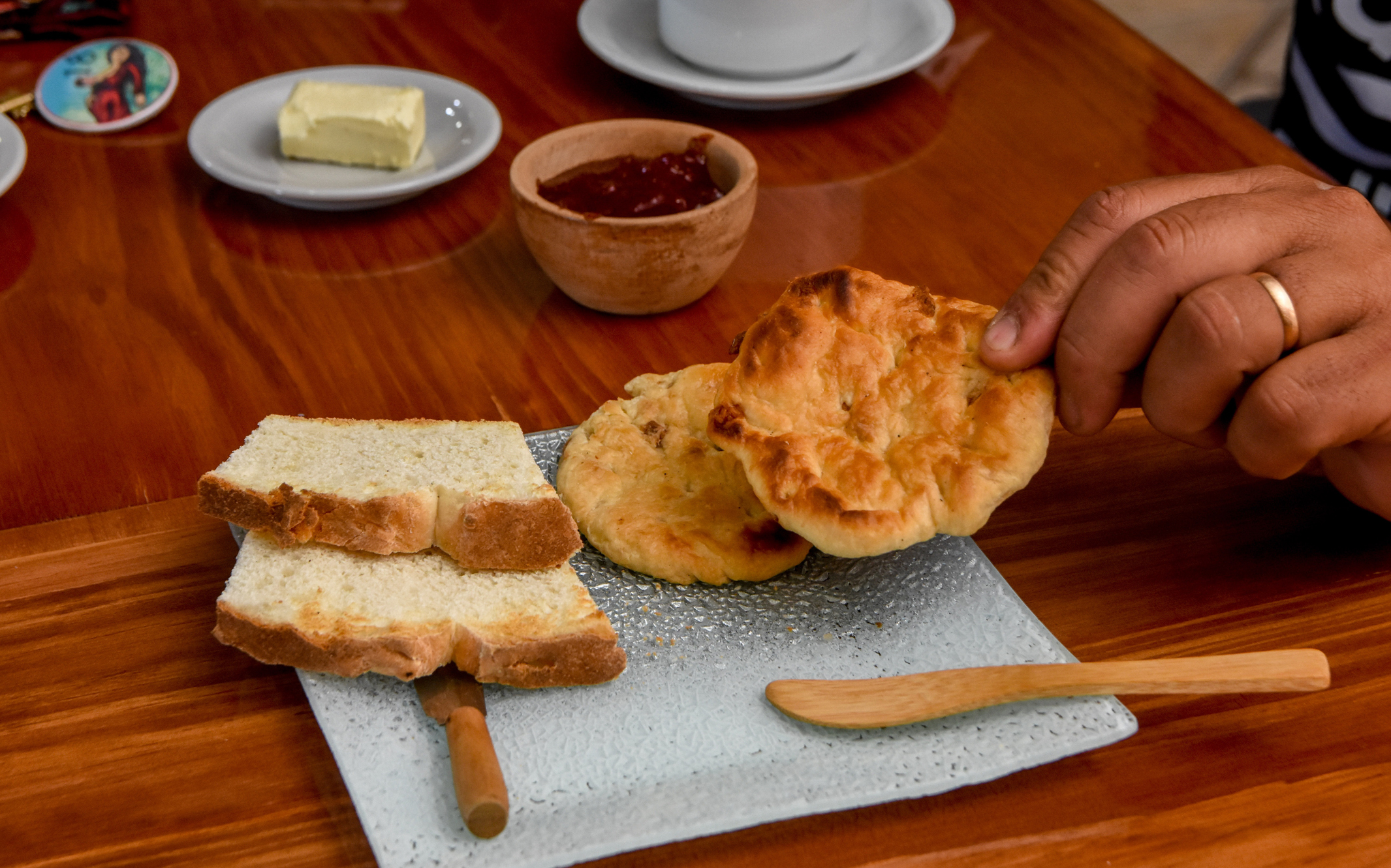 El alojamiento en cuestión estuvo cerrado, justamente por la pandemia, por un lapso de 10 meses, tiempo en el que se hicieron pequeños trabajos y obras de mantenimiento eléctrico. A su vez en ese interín, se trabajó para renovar la propuesta de desayunos, la única comida que se ofrece en el alojamiento. Ahora que está en manos de la cooperativa de mujeres del lugar le incorporaron sabores típicos y caseros como tostadas de pan casero, medialunas y semitas con chicharrones, manteca y dulces de frutas de estación caseros (como arrope o dulce de uva, dulce de membrillo o de tomate casero), jugo de naranjas exprimido, leche, café y té de yuyos de la zona como burro, incayuyo, ajenjo.
