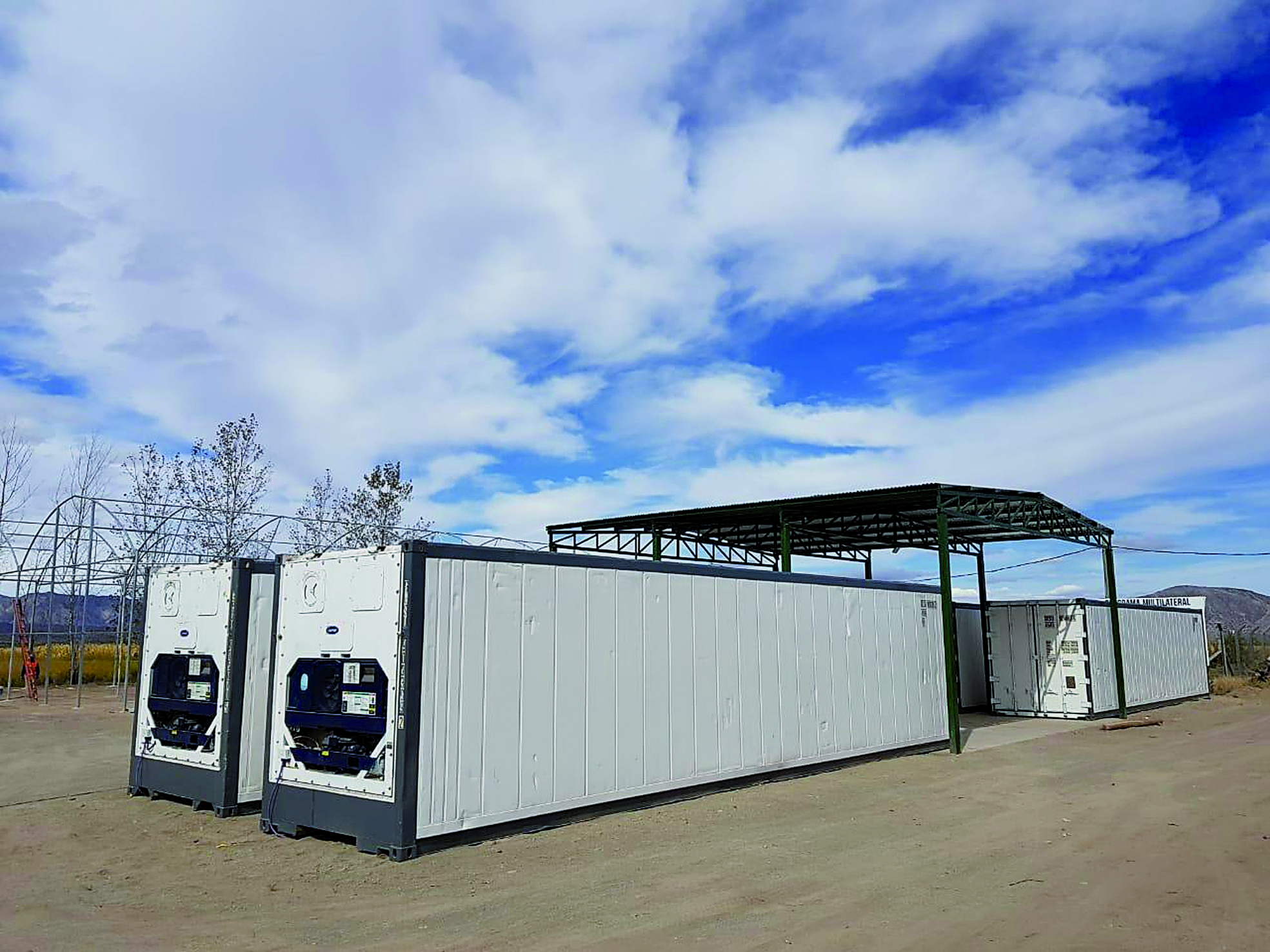 antigranizo, portones de ingreso, riego automatizado, motores de enrollado y sensor de temperatura entre otros aspectos. Las cámaras frigoríficas, por su parte, son cuatro en total y con tecnología de última generación; constan de un tamaño de 76,20 metros cúbicos midiendo de 12 metros de largo, 2,70 metros de alto y 2,35 metros ancho.