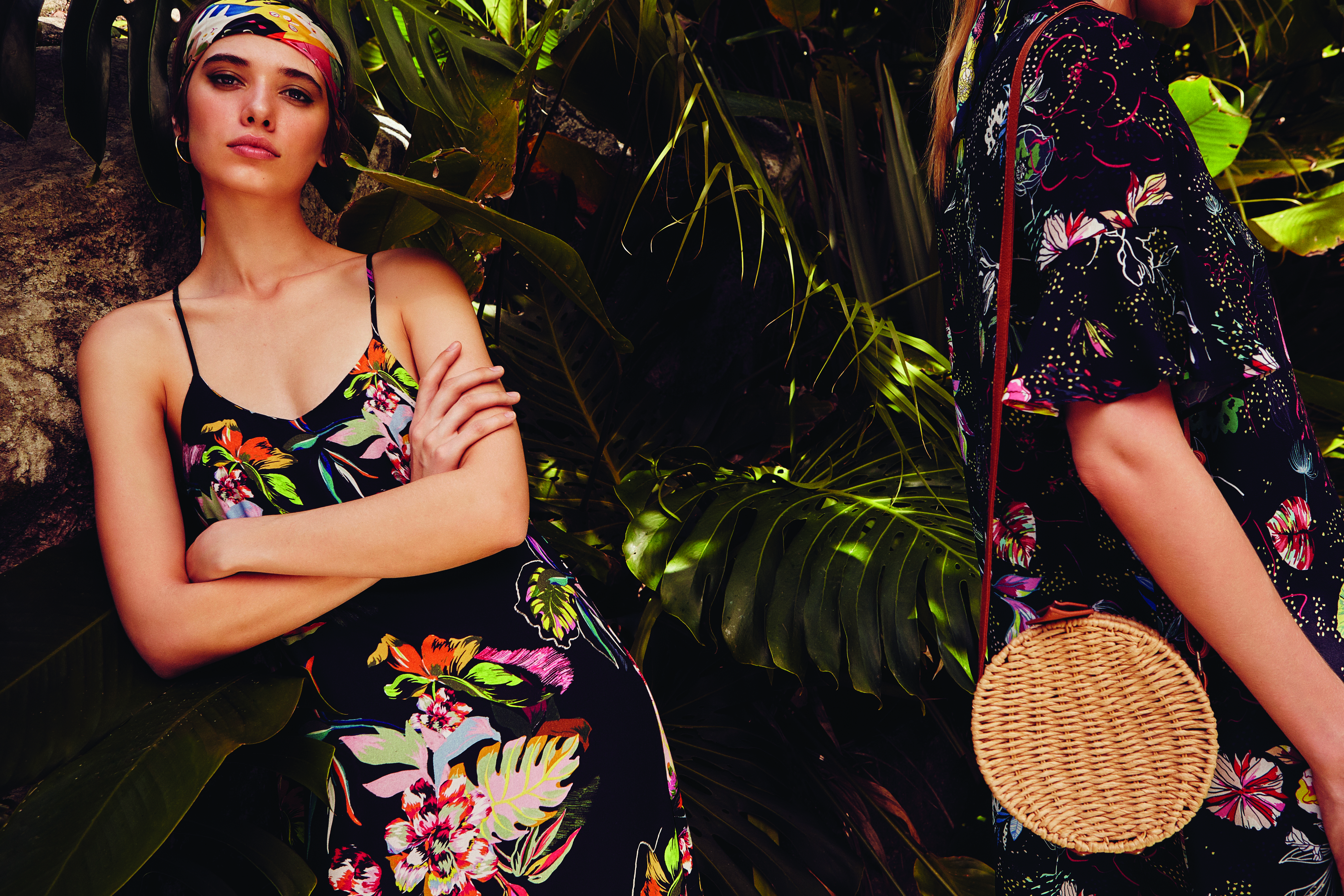 Esta tendencia es fuerte en estampados inspirados en la naturaleza, con gran presencia de flores y mucho color verde. Su vitalidad realza prendas como vestidos largos, camisas bordadas, remeras, kimonos y pantalones. Vale todo lo botánico.