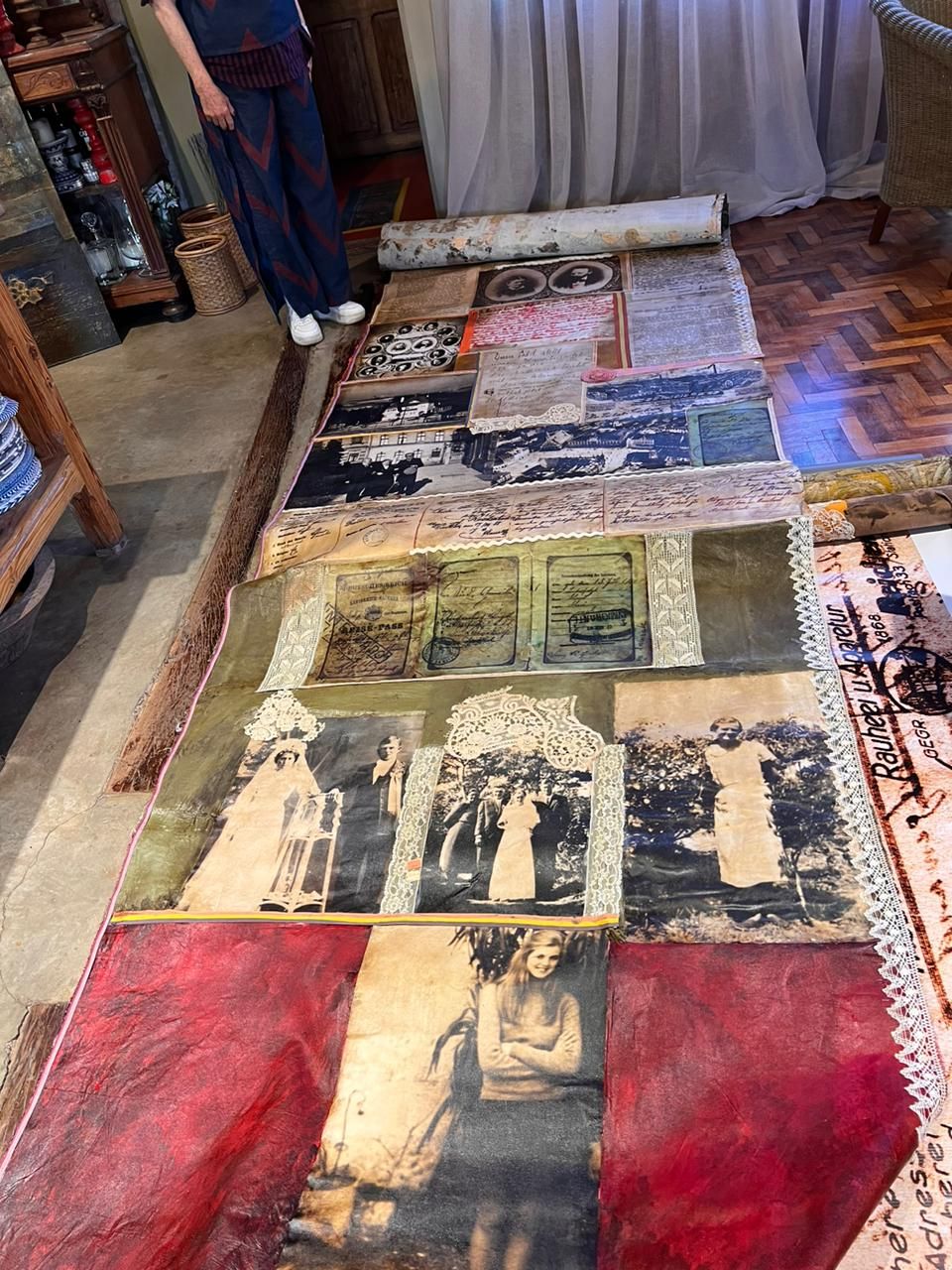 "Mi mamá estaba tan feliz del destino de sus telas y de que recuperara lo que hizo su bisabuelo. Por suerte pudo ver algunas de las pinturas intervenidas con telas, la última vez que nos encontramos, para la Navidad de 2019 porque yo ya estaba desarrollando la idea de la muestra. Ella murió en plena pandemia, en 2020 y fue un golpe tan duro que me provocó abandonar todo el trabajo porque me dolía seguirlo, sentía que no podía volcar en la tela lo quería. Con el paso del tiempo pude volver de a poquito, pero con la misma alegría que caracterizó siempre a mi mamá. Quizás porque volví a escuchar lo que ella decía: cuando la tormenta se calma, uno puede volver a empezar de nuevo", asegura la mujer que está convencida que su mamá está presente en cada uno de sus trabajos. De hecho, está ilusionada con la idea de llevar cada metro de tela intervenido al mismo predio de la fábrica en Alemania y donarlo para que hagan un museo.