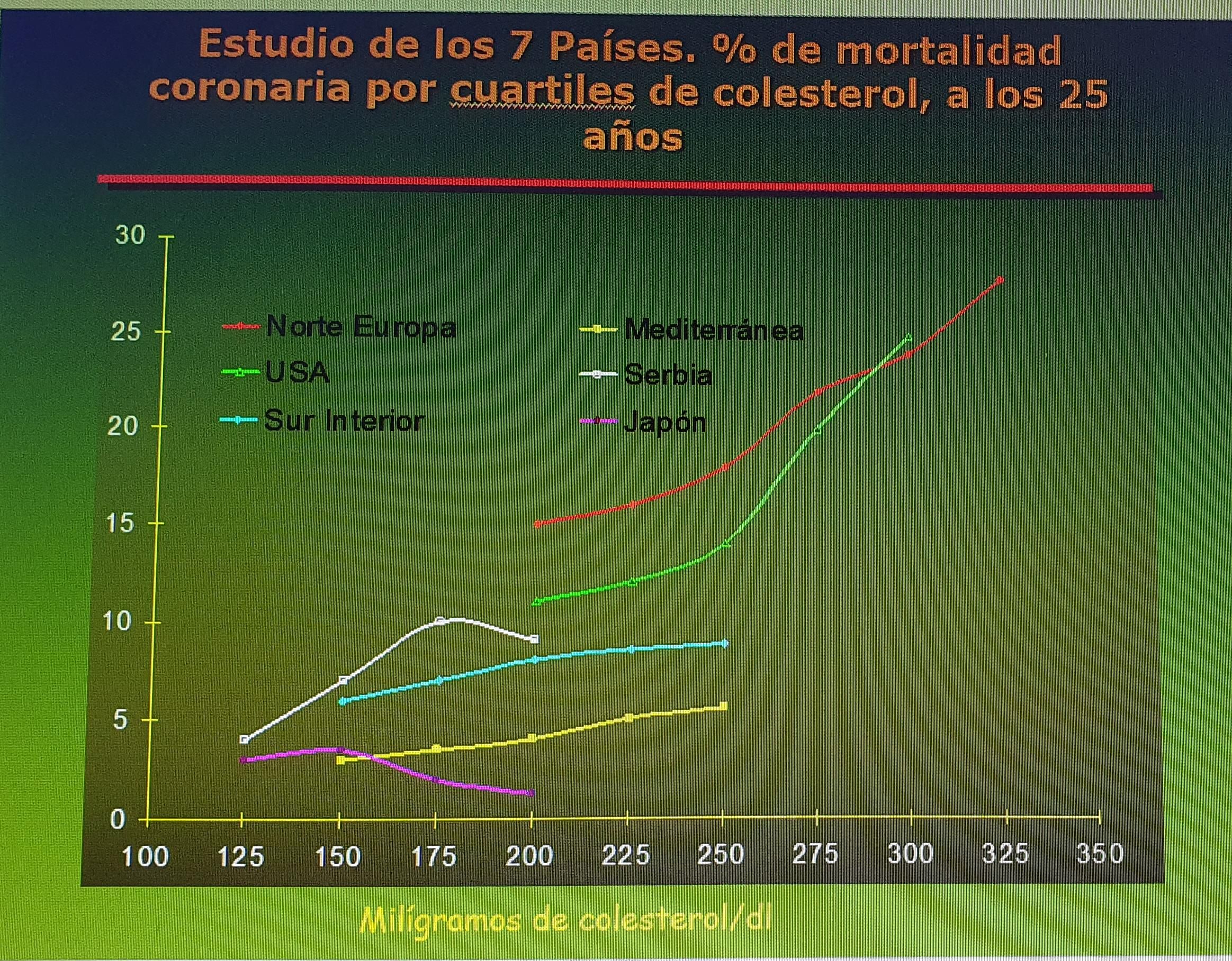 Continuó explicando "los factores de riesgo de arterioesclerosis son el colesterol, la diabetes, la hipertensión arterial, la obesidad, el tabaquismo y la permanente oxidación. Lamentablemente, la vida moderna y a veces la prensa, llevan a no razonar y estamos jugando con la vida, nada menos. Es dramático, los jóvenes no consumen aceite de oliva… Una de cada dos botellas de aceite de oliva que hay en el mundo se produce en España, sin embargo, su consumo ha descendido drásticamente en nuestro país. Es innegable que el aceite de oliva previene o evita las enfermedades cardiovasculares, que es de lo que morimos la mayoría de los humanos".