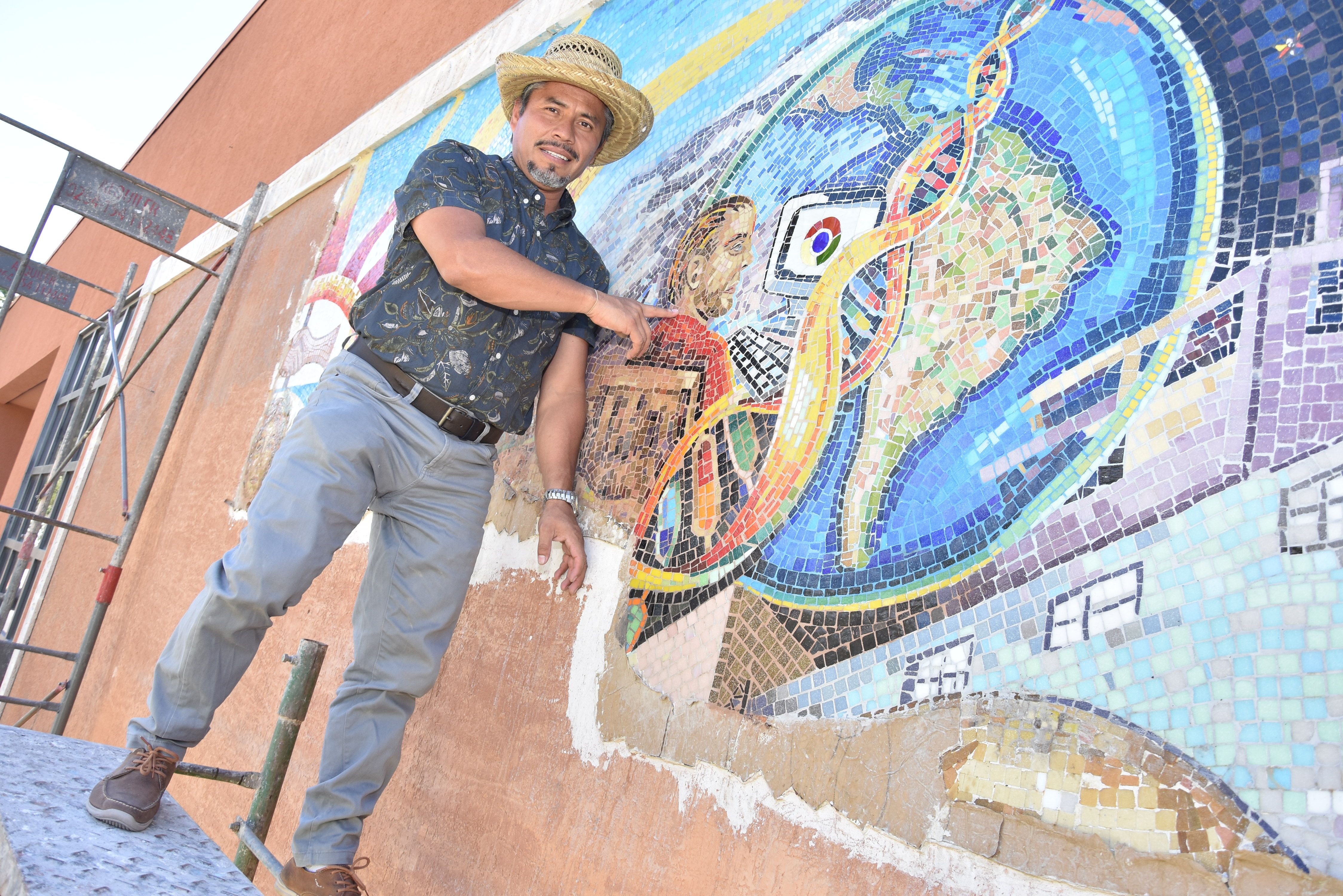 Sus palabras denotan pasión por lo que hace y como los fragmentos que une para crear imágenes, explica los detalles de la obra de su autoría que próximamente ornamentará la pared de ingreso al Centro de Convenciones Guillermo Barrena Guzmán. La sencillez hace olvidar que se trata de Jorge Luis Piña Rosales, mexicano y el mayor exponente latinoamericano del muralismo, quien a través de este magnífico trabajo busca dejar su huella en San Juan.