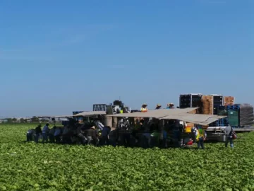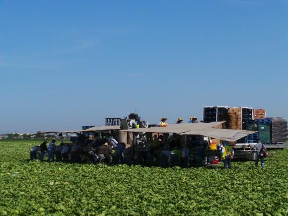 Llegamos al reino de las lechugas en fresco, en Estados Unidos. Del mundo entero viajan a ver esto. La megaempresa Tanimura y Antle, posee hoy cosechados 7 campos con lechugas, con todo el movimiento que esto acarrea, por lo que le consultamos al encargado general Alfredo Chavez, de 51 años, sobre el pago de los numerosos operarios, que en su mayoría eran latinos. Nos respondió que el estado californiano exige un mínimo de U$S 8 la hora de trabajo manual; la firma paga 9 y algunas labores más complicadas U$S 9,50 la hora. Para ellos es un buen número, y trabajan hasta el sábado por la mañana. Con estos valores las cuadrillas se hacen cargo de escardilladas, desyuyadas, deshojes, etc. Según el capataz, el estado no interfiere en el control de la gente. Las deja trabajar. Es más, la necesidad de mano de obra rural es tan grande que pueden trabajar desde los 16 años, con un permiso de la escuela del menor, y sólo hasta 4 días a la semana. La edad normal para empezar a trabajar es a los 18 años. Todos trabajan por contrato. Además, cada cuadrilla es como una gran familia, que es premiada por su trabajo con dos grandes fiestas al año.