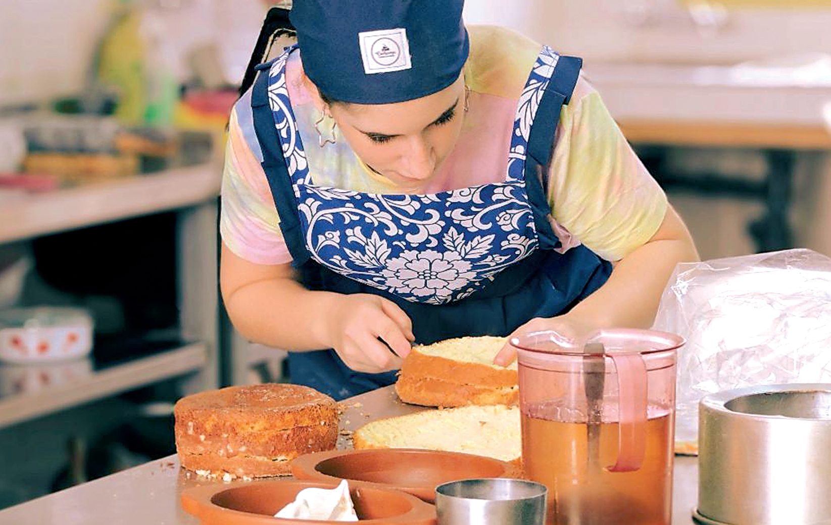 Por un lado, aprovechó el interés generado en la pandemia por meter las manos en la masa de mucha gente que se animó a hacer preparaciones impensadas, no sólo por las dificultades del paso a paso sino por la variedad de ingredientes. Y por otro quiso darle uso a sus utensilios y principalmente a todos los sabores que estaban a la espera en sus estanterías. Además sacó a relucir su título de docente de Pastelería, el que hasta ahora nunca había puesto en funcionamiento, después de estudiar en la Universidad Católica y en el IAG en Buenos Aires.