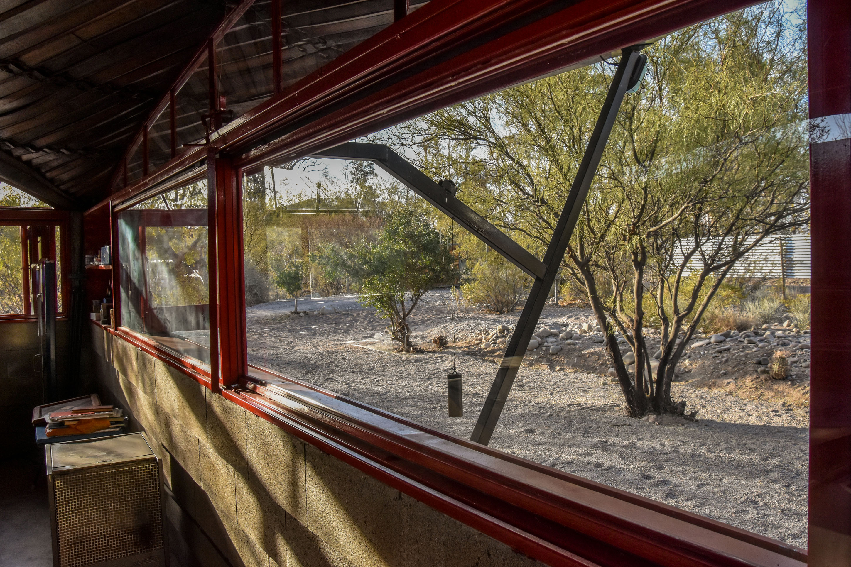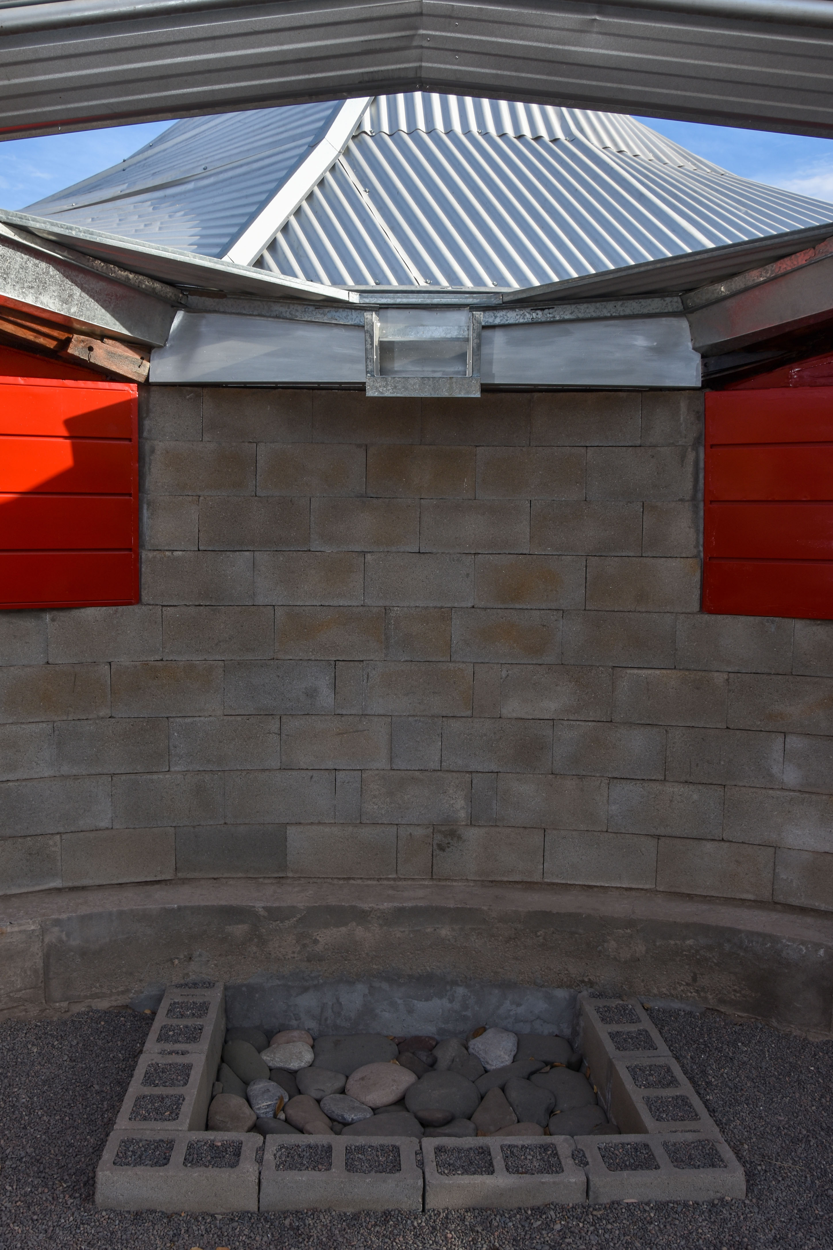 Si bien se suele decir que este material no es un buen aislante térmico, para Lisandro no fue un obstáculo ya que fueron otros los elementos utilizados para crear ambientes más placenteros con uso ínfimo de cualquier tipo de energía. "En este edificio los aleros y toda la cubierta protegen los muros por lo que son muy poco invadidos por el sol en el verano, es una arquitectura del desierto. Con este sistema decidí resolverlo ya que cada parte se emparenta con la otra", relata.