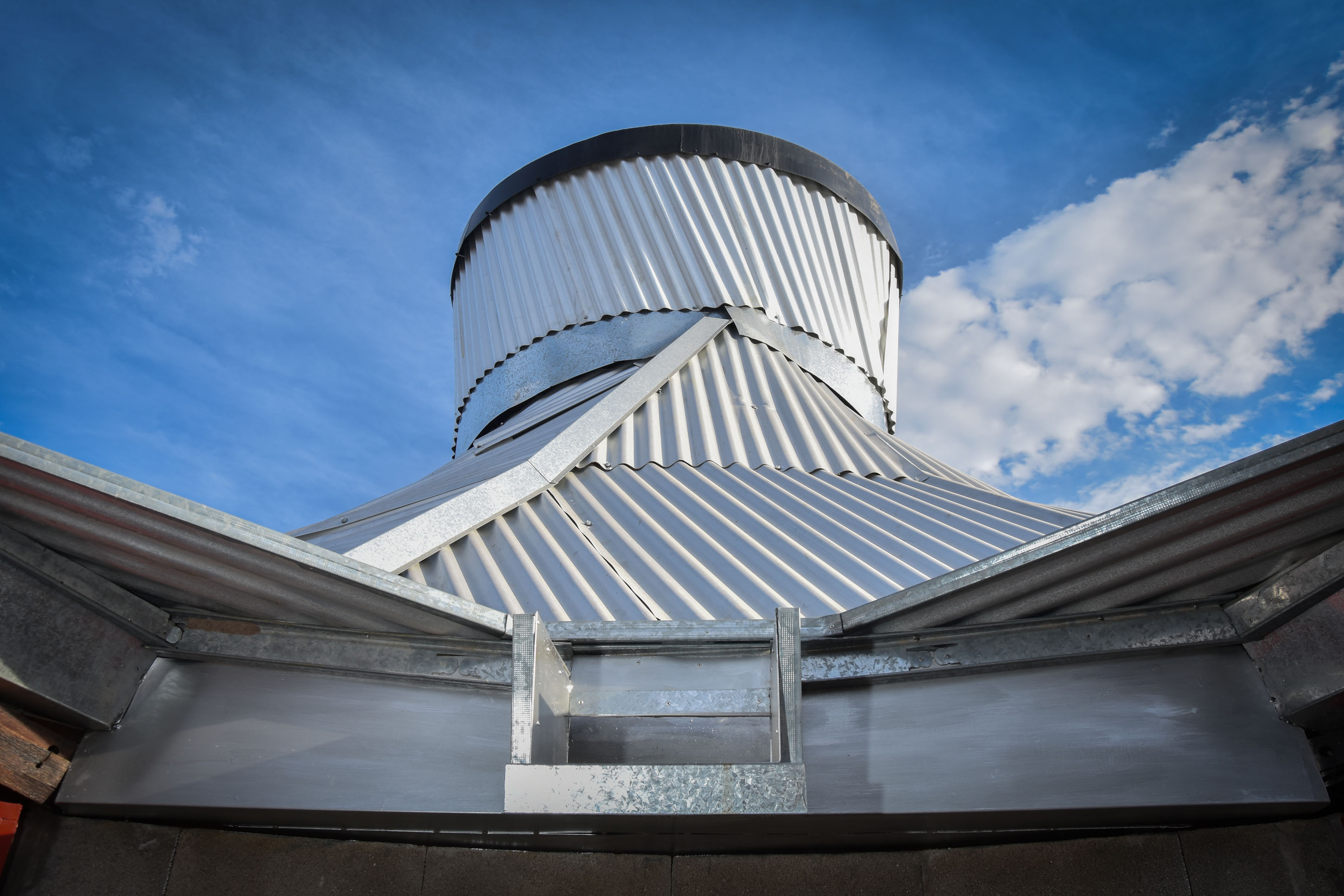 El uso de este material reciclado, con una forma poco convencional para un techo, sin duda fue un verdadero experimento pero en un edificio concreto, es decir que casi no quedaban márgenes para el error. Demás está decir que el resultado fue óptimo.
