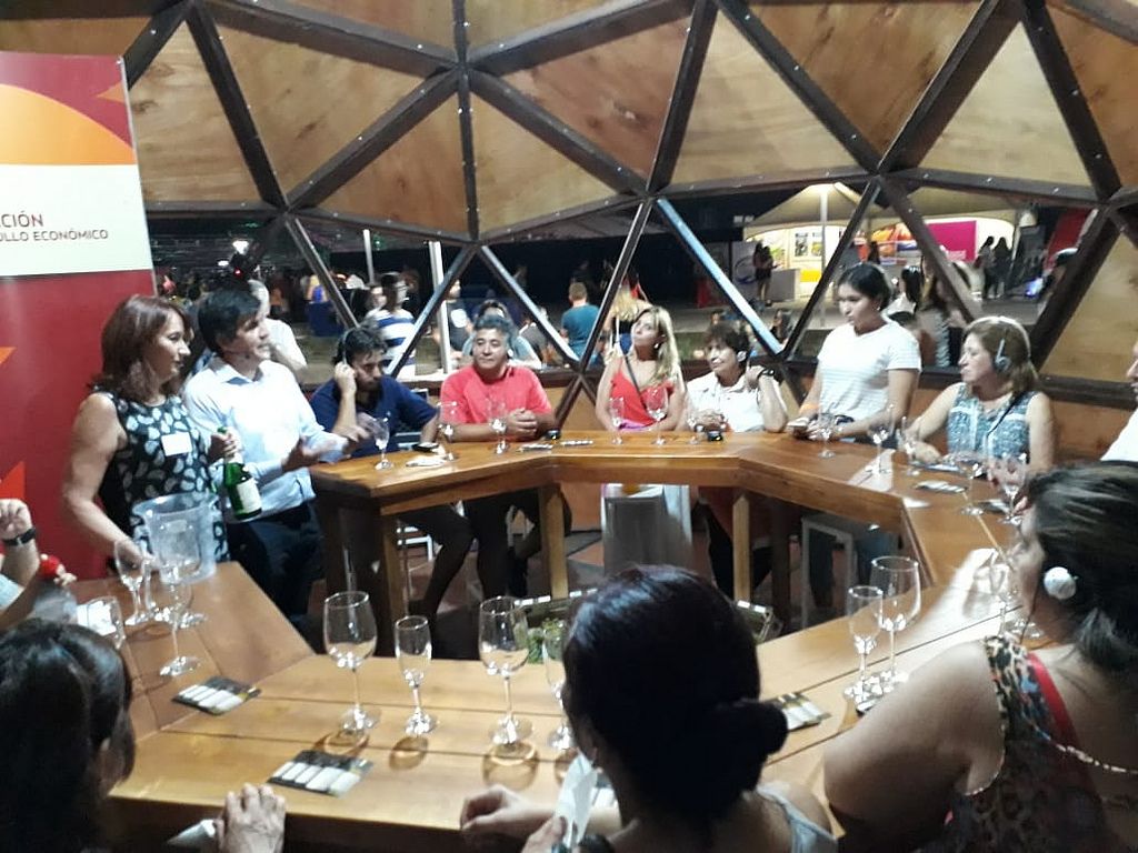 En el sector del vino se ha instalado un llamativo domo de madera realizado por un emprendedor de Barreal, donde se realizaron las degustaciones y charlas sobre vinos. En la primera noche se realizaron 8 degustaciones en grupos de 20 personas a quienes se les explicó, no sólo cómo apreciar los atributos del vino blanco sanjuanino sino que además pudieron conocer las uvas que les dan origen, pues hubo racimos de cada variedad blanca presentada. Estas catas dirigidas estuvieron a cargo de profesionales pertenecientes al Centro de Enólogos y de los especialistas de cada bodega participante.