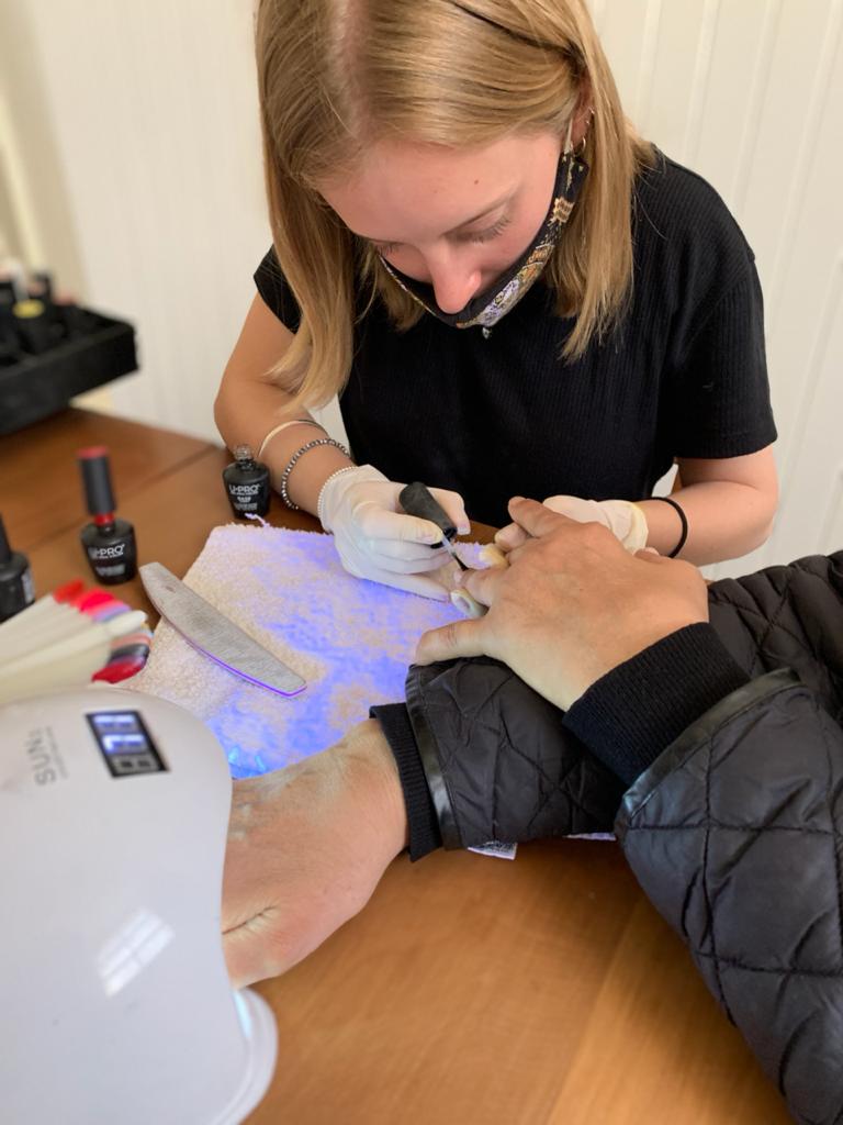 "Lo hago porque es una pasión, siempre me gusto, es mi hobby. Además, contar con tus propios ingresos está bueno, no solo por la independencia sino también por las inversiones en insumos. Comencé comprando esmaltes en Todo Moda y le pintaba las uñas mis amigas. Luego a medida que iba creciendo me fui perfeccionando en talleres, creo que tengo paciencia y prolijidad para hacer este metier. Esto lo hago sobre todo porque las clases virtuales son a la mañana así dispongo de muchas tardes para trabajar. Trato de ser organizada y distribuir bien mis horarios. Hago manicura completa, esmaltado, esmaltado semi permanente y kapping ( que es un sistema innovador indicado para aquellas personas con uñas débiles, quebradizas o escamadas, también para aquellas que tienen el hábito compulsivo de comerse las uñas".
