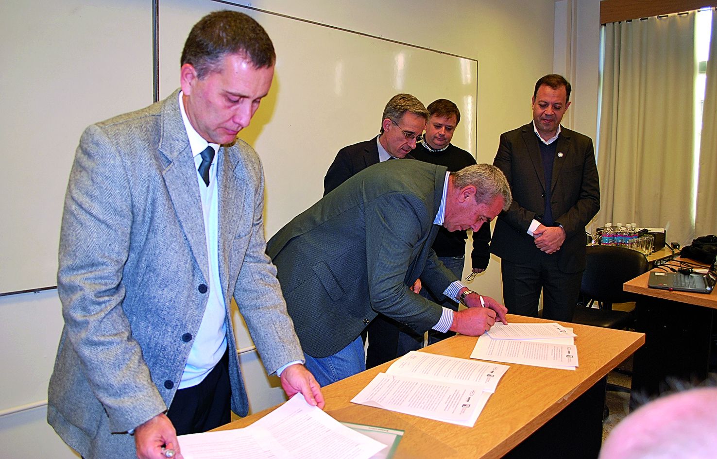 El pasado día 5 de julio en el rectorado de la Universidad Católica de Cuyo -UCCuyo-, participaron el señor Oscar Eduardo Iraola y el licenciado Adolfo Cánepa, presidente y director académico, respectivamente, de la Fundación Profesional para el Transporte FPT -de la Fadeeac-, el señor José Maldonado, presidente de Uprocam; el rector de la UCCuyo, doctor Claudio Larrea, el contador Leonardo Saball, decano de la Facultad de Ciencias Económicas y Empresariales, el responsable de capacitación de la universidad y los licenciados Marcelo Vásquez y Adrián Alonso, del Instituto de Investigación y la Cátedra de Agronegocios.