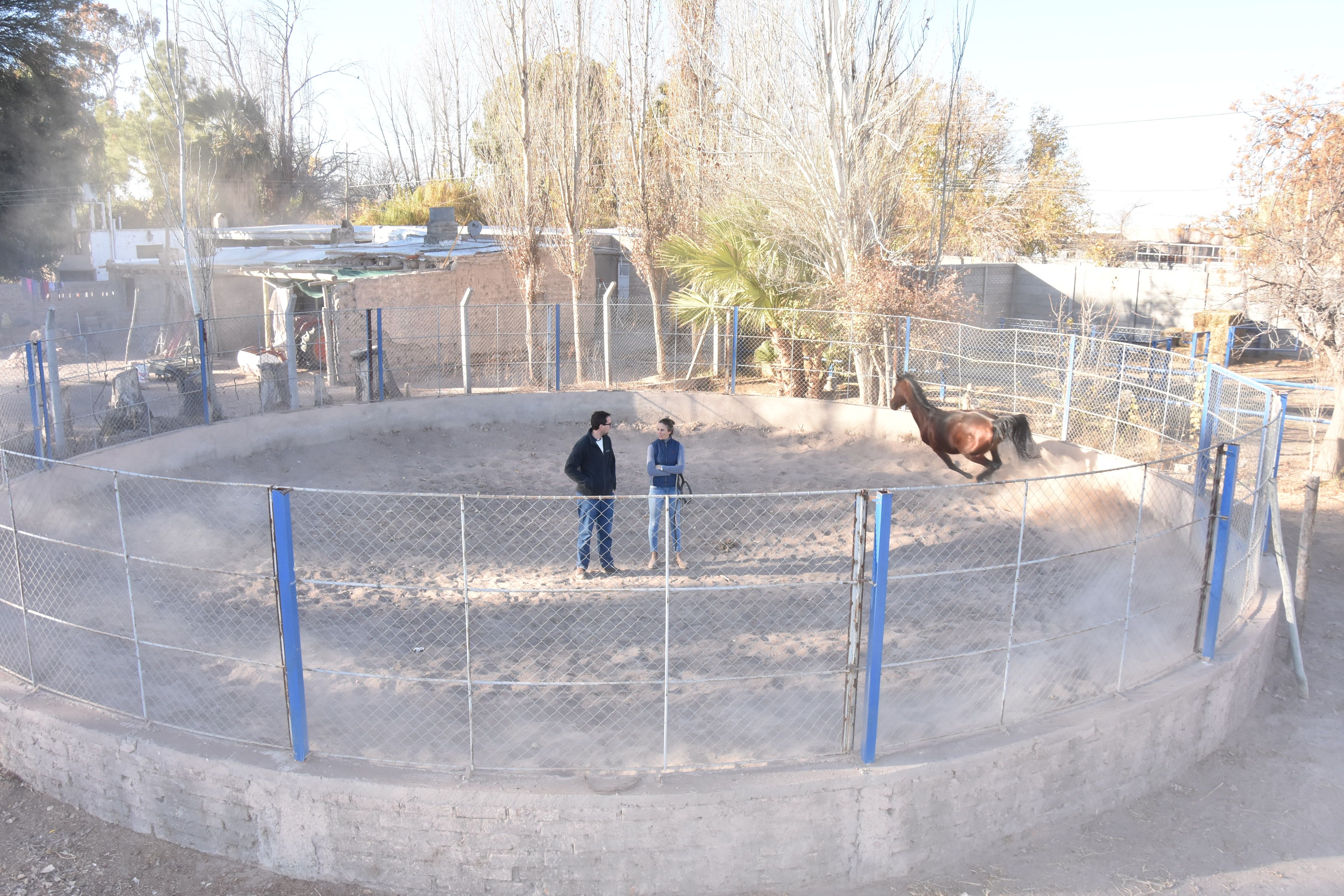 "Tenemos un corral redondo para el amanse y observación de los animales de unos 12 metros de diámetro. También 10 corrales abiertos de seis por seis metros y seis cobertizos de cuatro por cuatro metros", indicaron en la gira.