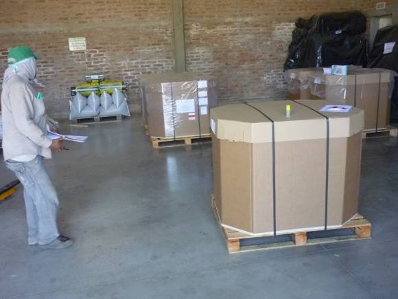 Es para destacar, y Suplemento Verde pudo constatarlo como único testigo el miércoles de esta semana, en el galpón de procesamiento de semillas de la firma Agro-Fer, en el departamento Pocito, donde por primera vez se estaba terminando la carga de un contenedor con semillas de exportación, pero no en las clásicas bolsas de plástico crudo de 15 ó 20 kilogramos según la especie, sino en envases de cartón duro, llamados triwalls, que vienen a ser bines de 400 kilos aproximadamente. Los mismos son manejados con pequeñas grúas elevadoras y permiten más comodidad, a su vez que seguridad en el transporte.