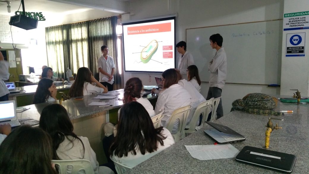 Hablan de antibióticos, estructura de las células, colonias de bacterias y cómo combatirlas más aún cuando cada vez más se vuelven resistentes al efecto de la medicación, como si fuesen investigadores, científicos, bioquímicos o médicos. Y tan sólo están cursando el 5º año del secundario.