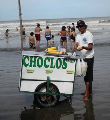 En la arena de la playa por ejemplo, un choclo cocido con una pincelada de manteca o margarina derretida y un poco de sal cuesta $8, es decir, 10 veces más que en la feria local. Por ejemplo, un vaso de jugo de melón, elaborado con una tajada gruesa de esta cucurbitácea; cuesta $15 el vaso más chico.