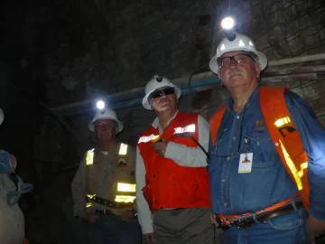 Posteriormente el ministro visitó la Mina Subterránea, nueva área en desarrollo en el complejo minero, que ya alcanzó 170 metros de profundidad, en donde observó detalles del área de Ventilación 1, Chimeneas de Ventilación, Refugio de Emergencia, salidas de emergencia, desarrollo rampa principal y frentes de explotación, deteniéndose en particular en los Subniveles de Explotación 7 y Subnivel de Explotación 9 en proceso.