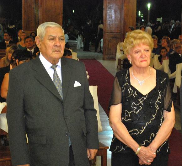 En la parroquia de Santa Lucía y bendecidos por el sacerdote Carlos Campillay, se casaron Elizabeth del Valle Aubone (29) y Diego Andrés Riveros (36), licenciado en Administración de Empresas, que mantuvieron un noviazgo de casi tres años luego de una interrupción de cinco. La novia ingresó precedida por un cortejo de sobrinitos: María Pía (2), Santiago (4) y Yamila (7) Aubone, Franco Guevara (6), Rodrigo (6) y Gastón (6) Riveros. Fueron padrinos sus padres, Norma González y esposo, Arturo Aubone, Juana Isabel Martín y esposo, José María Riveros. Testigos, Paola González y Alejandro Villavicencio. Para el civil, Arturo, Mauricio y Cristian Aubone, Alejandro y Marisa Riveros con Cristina Zeballos. Celebraron en un nuevo local ubicado en Santa Lucía junto a poco más de trescientos invitados. El vestido nupcial fue realizado por Gladys Montilla con el peinado de Noemí Cortez y maquillada por Analía Gordillo. La luna de miel se constituyó en un crucero por la costa brasileña.