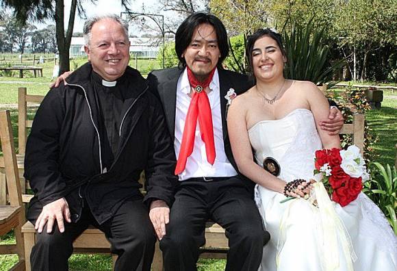 Gabriela Raffo (33) y Pablo Yamamoto (37), son diseñadores de Imagen y Sonido, con estudio de diseño gráfico propio en Buenos Aires. Tienen ya dos hijos, Kiichiro Tomás y Valentina Mei. La ceremonia fue en la parroquia Exaltación de la Cruz, en Capilla del Señor, Buenos Aires. La bendición estuvo a cargo del sacerdote Hernán González Cazón, que llegó desde Añatuya, en Santiago del Estero. Apadrinaron los padres de la pareja: Rosa María Pantano y esposo, Nello Raffo, Kinuyo Tanoue y esposo, Kenya Yamamoto. Testigos, Claudio Trebin y Carolina Soubelza.