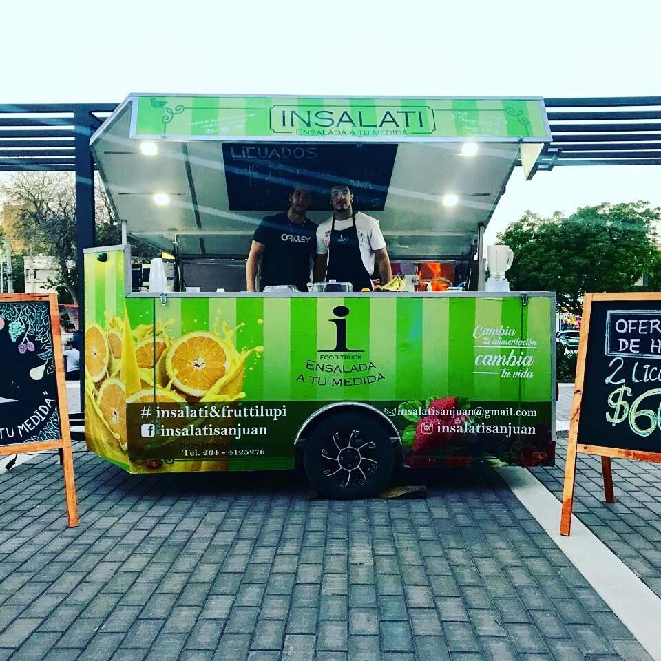 Verduras y frutas son la materia prima de Insalati, el trailer que algunos fines de semana se instala frente a la plaza principal de Rawson o que en su defecto, se puede encontrar en muchos eventos ligados al deporte y la vida sana.