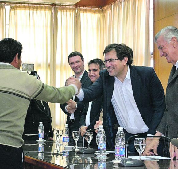 El gobernador José Luis Gioja, junto al ministro Marcelo Alós y el director General del Registro Nacional de Trabajadores y Empleadores Agrarios, Guillermo Martini, entregaron certificados de cursos de formación profesional para el trabajo rural a jóvenes en el marco del programa Progresar, conjuntamente con Renatea. Además se firmó un convenio con Emicar para brindar capacitación y asesoramiento sobre educación y seguridad vial a los trabajadores agrarios. Participaron también de la entrega el secretario de Agricultura, Ganadería y Agroindustria, Andrés Díaz Cano; el secretario de Política Económica, Leonardo Gioja; el titular del Anses en San Juan, Lic. Franco Aranda; el Coordinador del Prosap, Ing. Hector Llera y el delegado de Renatea San Juan, Dr. Eduardo Martinez Yanzón.