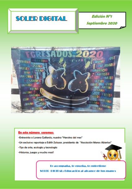 Soler Digital es el nombre que recibe la revista que producen y hacen los alumnos de todos los grados de la escuela del Barrio Los Tamarindos en Chimbas. Con esta motivación los directivos y docentes lograron despertar el interés de los chicos por diferentes asignaturas. Se transmite por redes sociales, sobre todo por Whatsapp y el canal de Youtube de la institución.