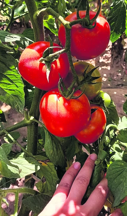 "Asimismo plantamos un tomate a campo, de piso, temprano, el Sheena, perita determinado de maduración concentrada, de muy buen tamaño, con resistencias completas (nemátodes, Verticillium, Fusarium, Peste Negra, etc), y que es de excelente color. Se puede hacer tardío también".